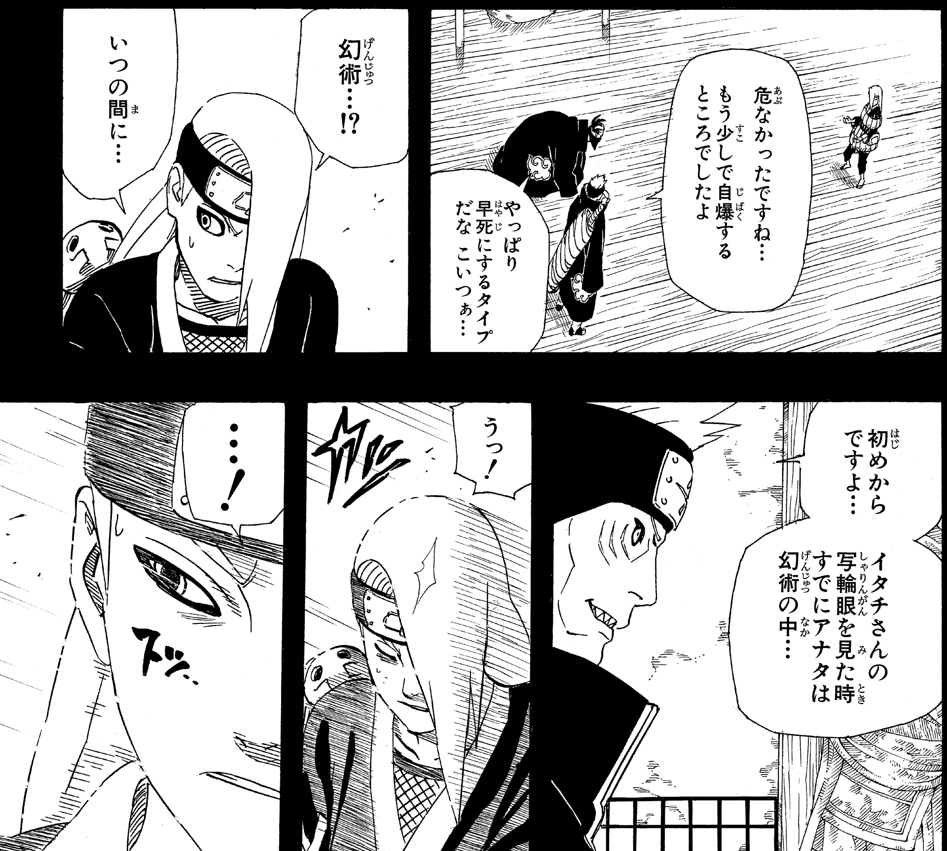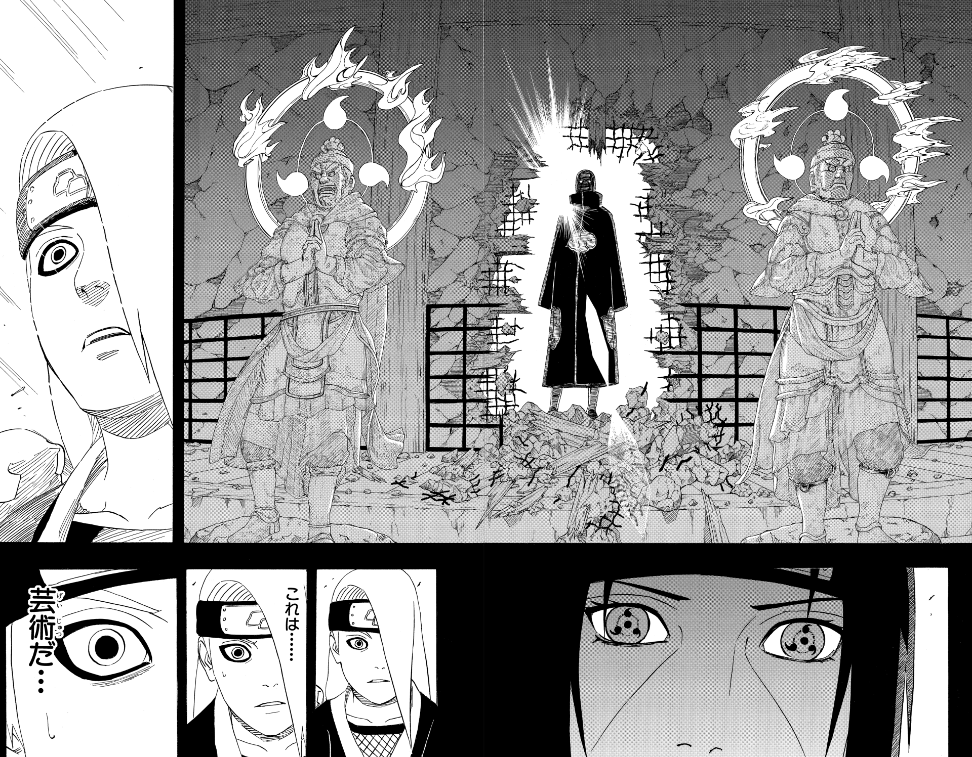 Up until this point, Deidara had believed his artistic ninjutsu to be flawless, but it fails to so much as make Itachi blink.