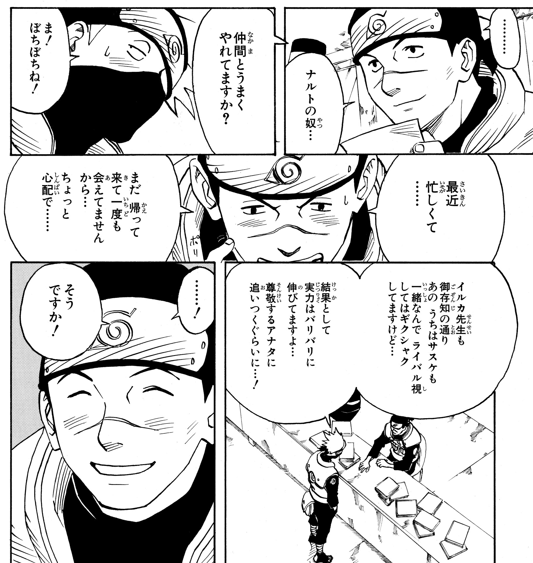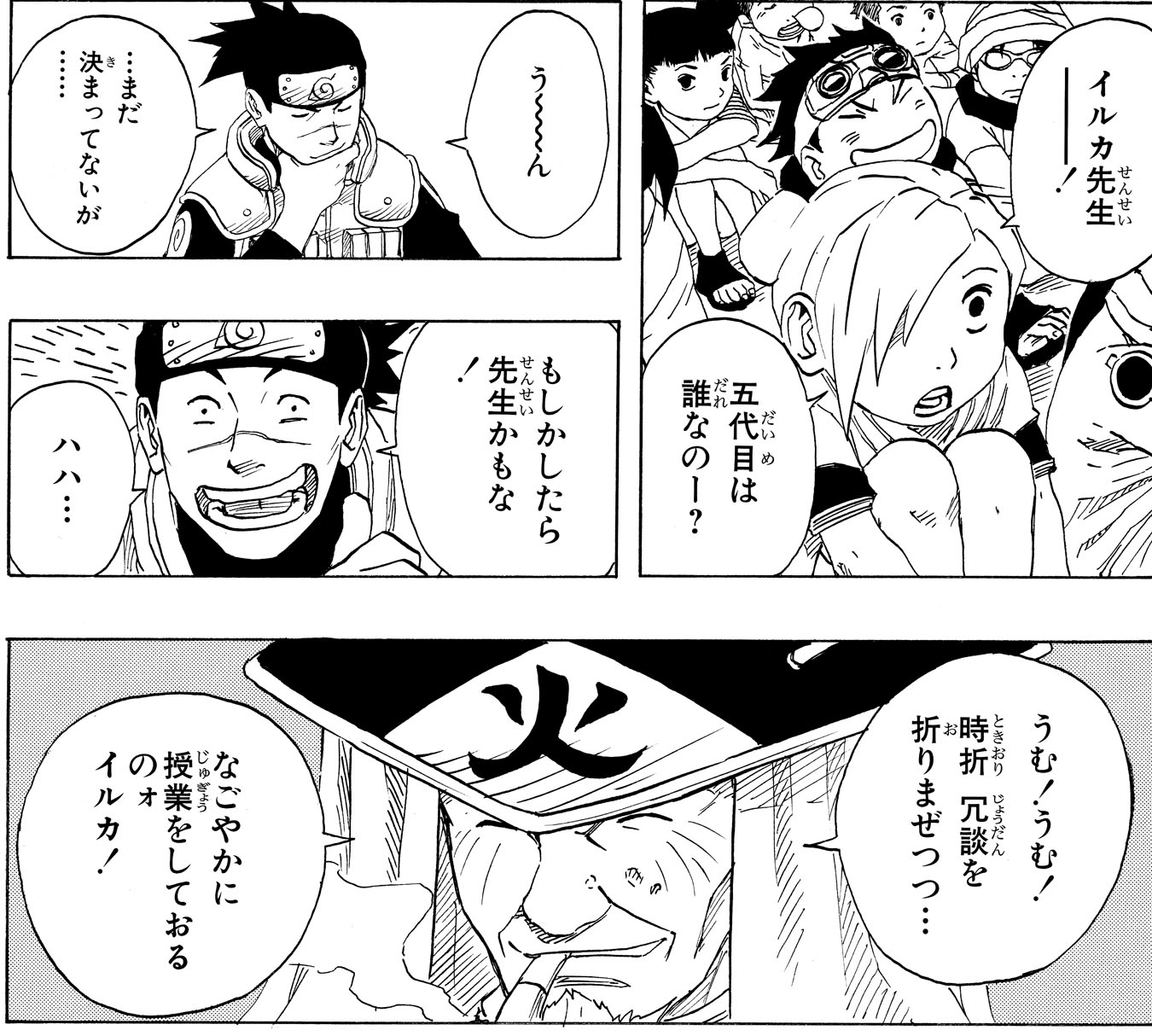 From Hiruzen, as well as Kakashi—who was assigned as the Jonin for Naruto's team—Iruka hears of their escapades, sympathizing with their highs and lows.