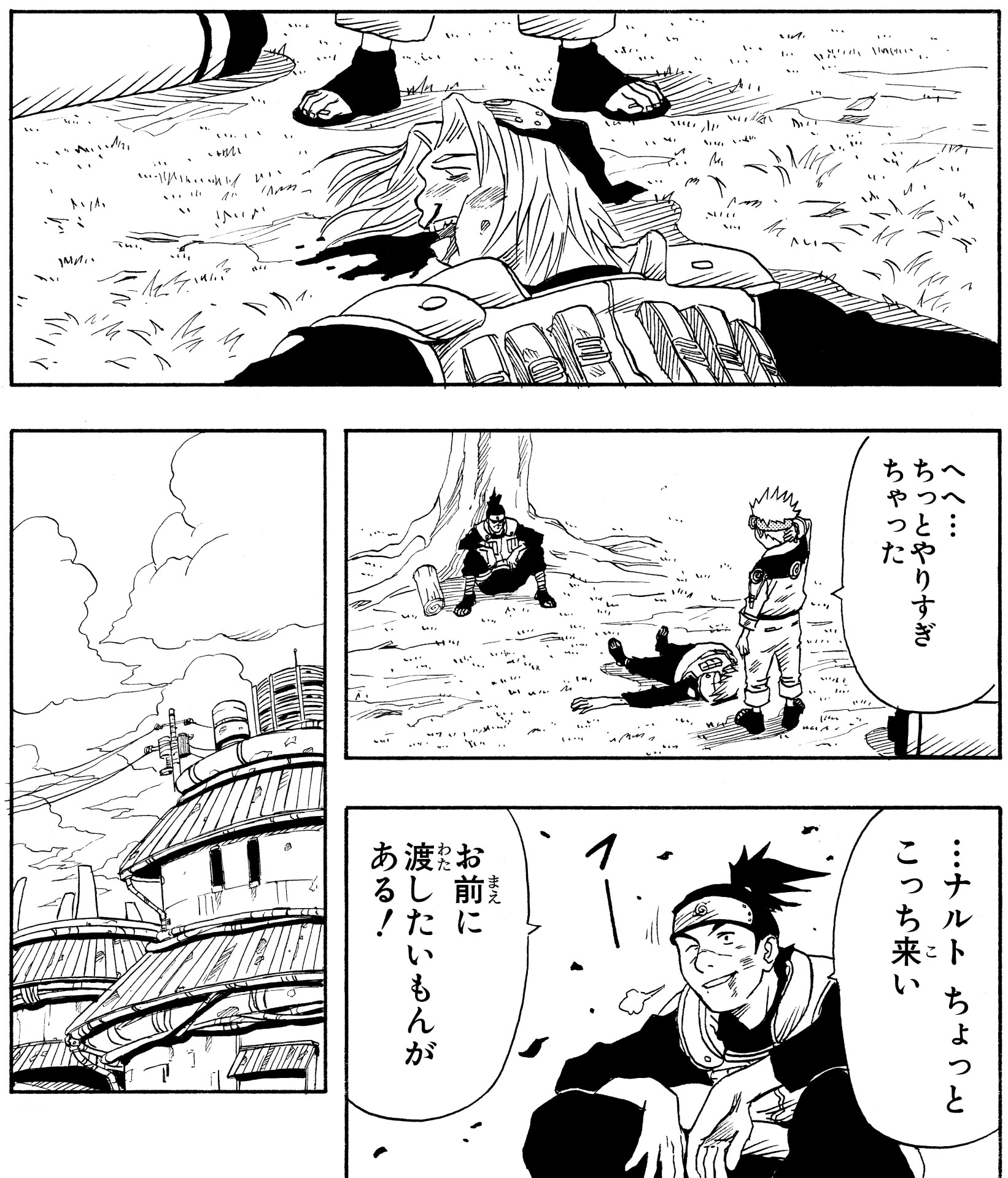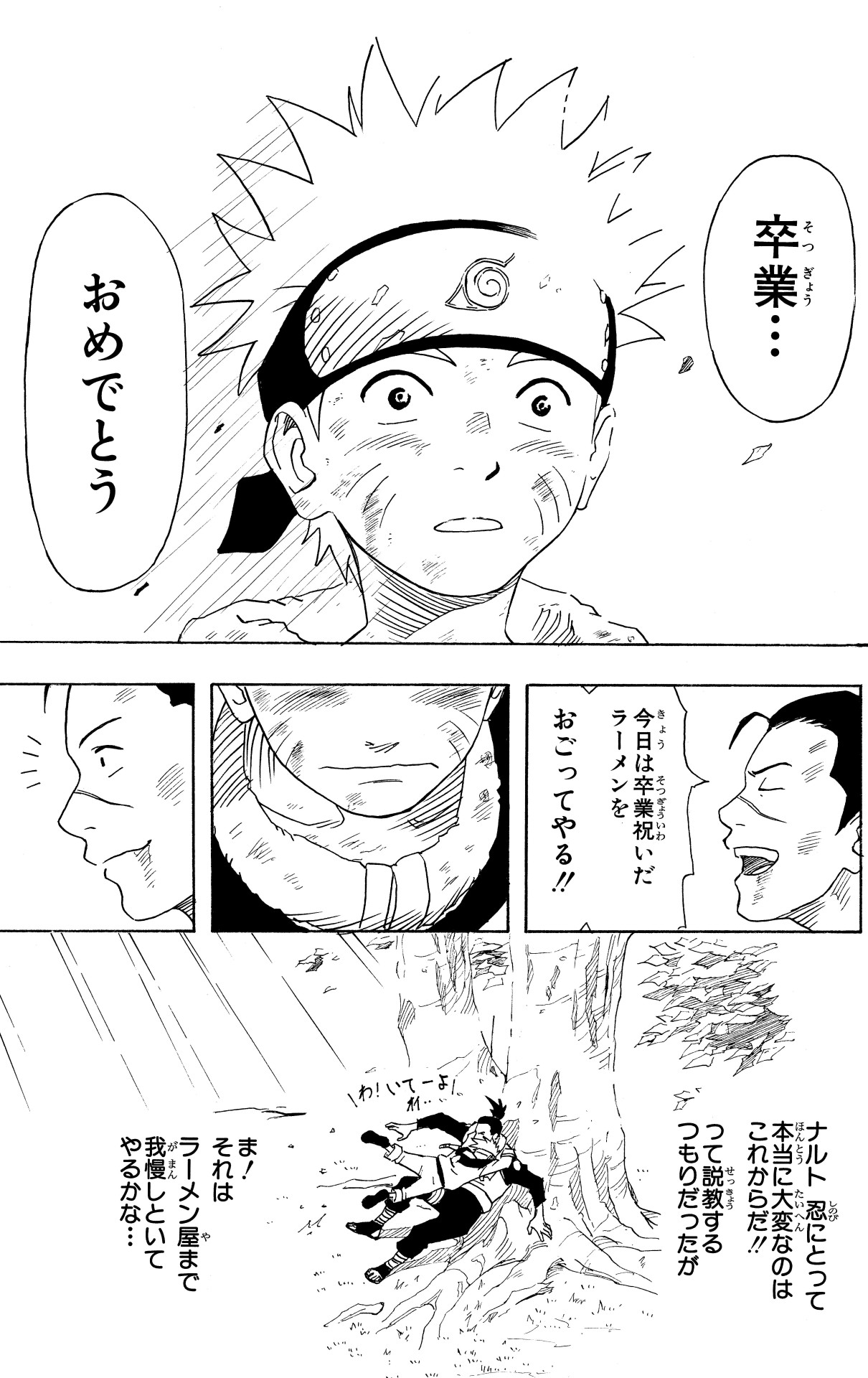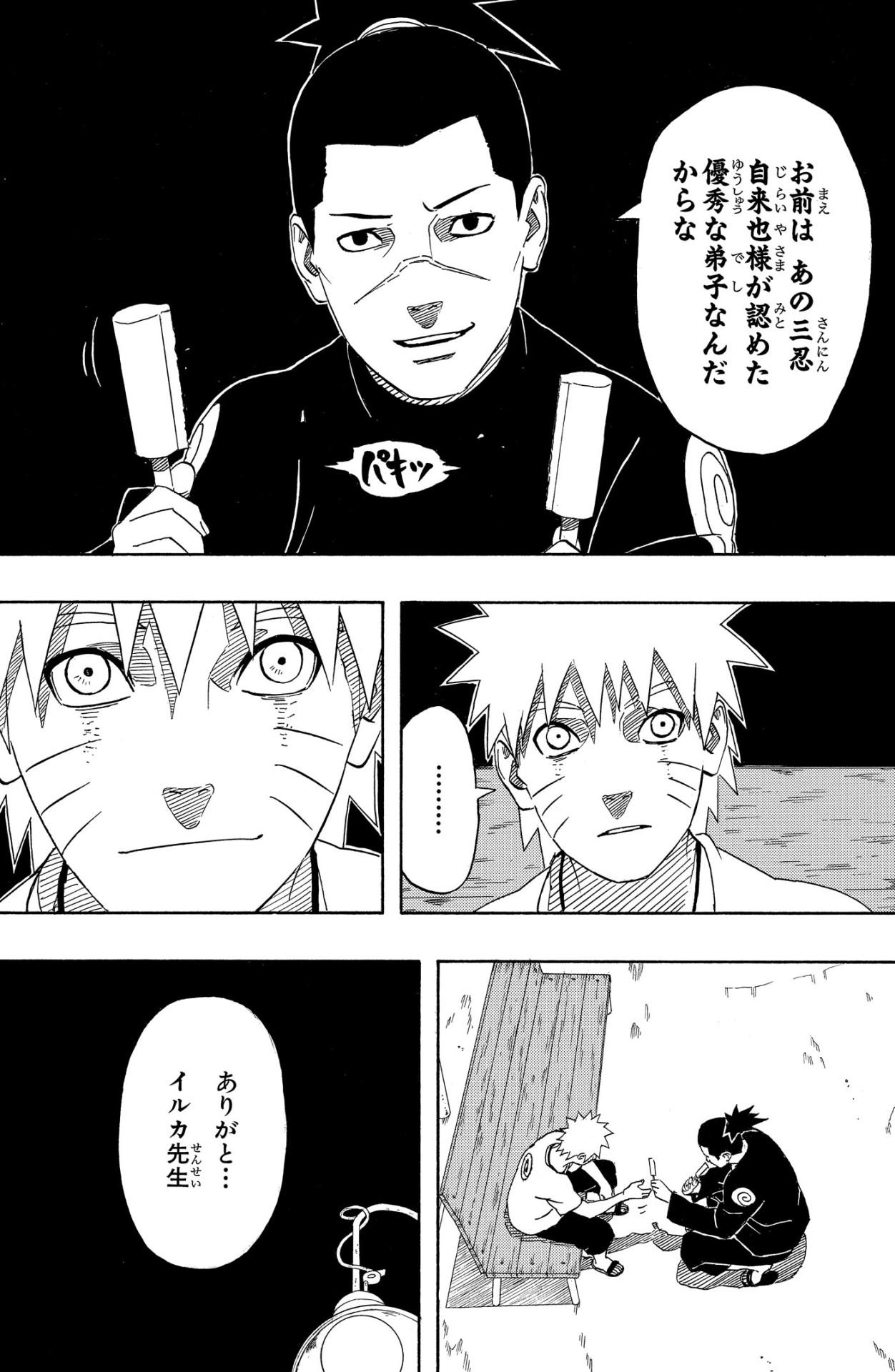 In the wake of Orochimaru's attack on Konoha, Iruka knows more will be expected of Naruto than ever. But instead of worrying about his student as he had in the past, he just encourages him to do his best with a smile.