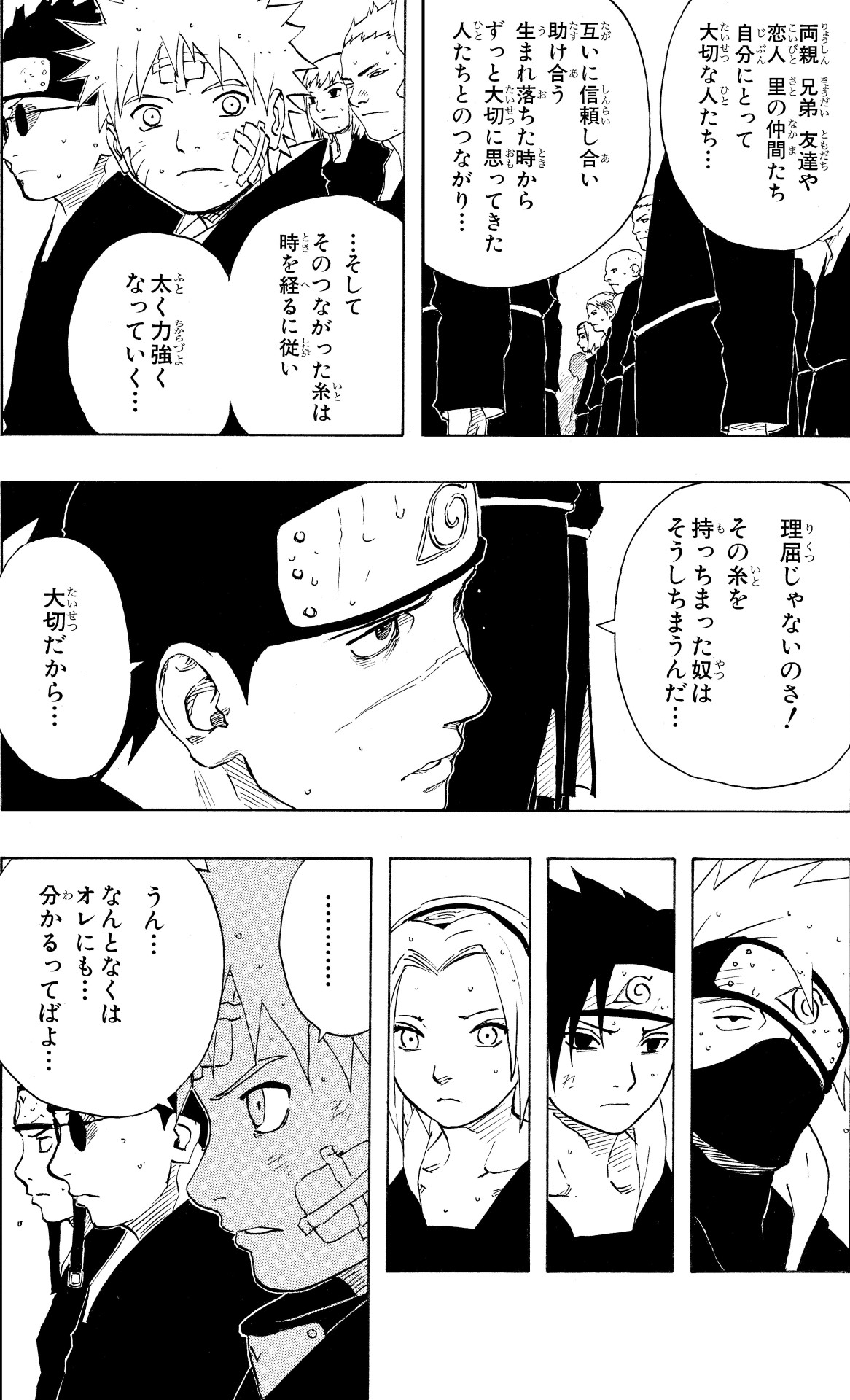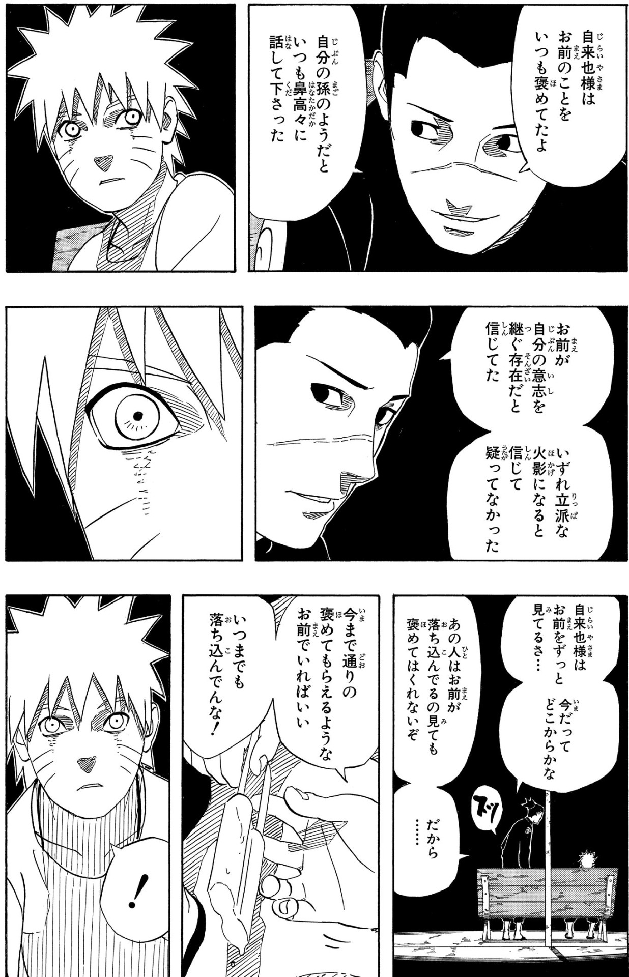 Naruto, who has seen the manner in which other shinobi live and die during the course of his missions, is able to understand Iruka's words and take them to heart.