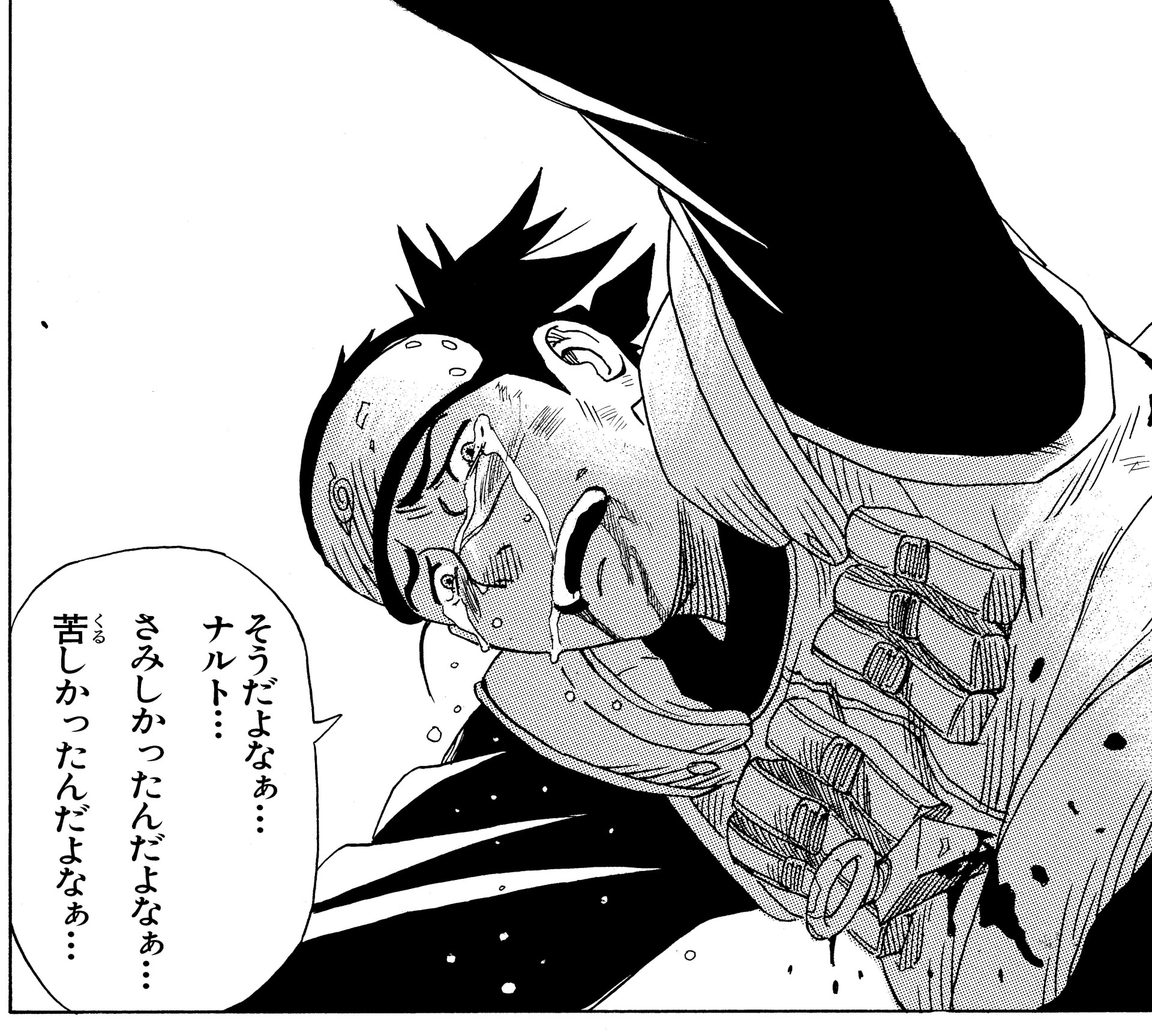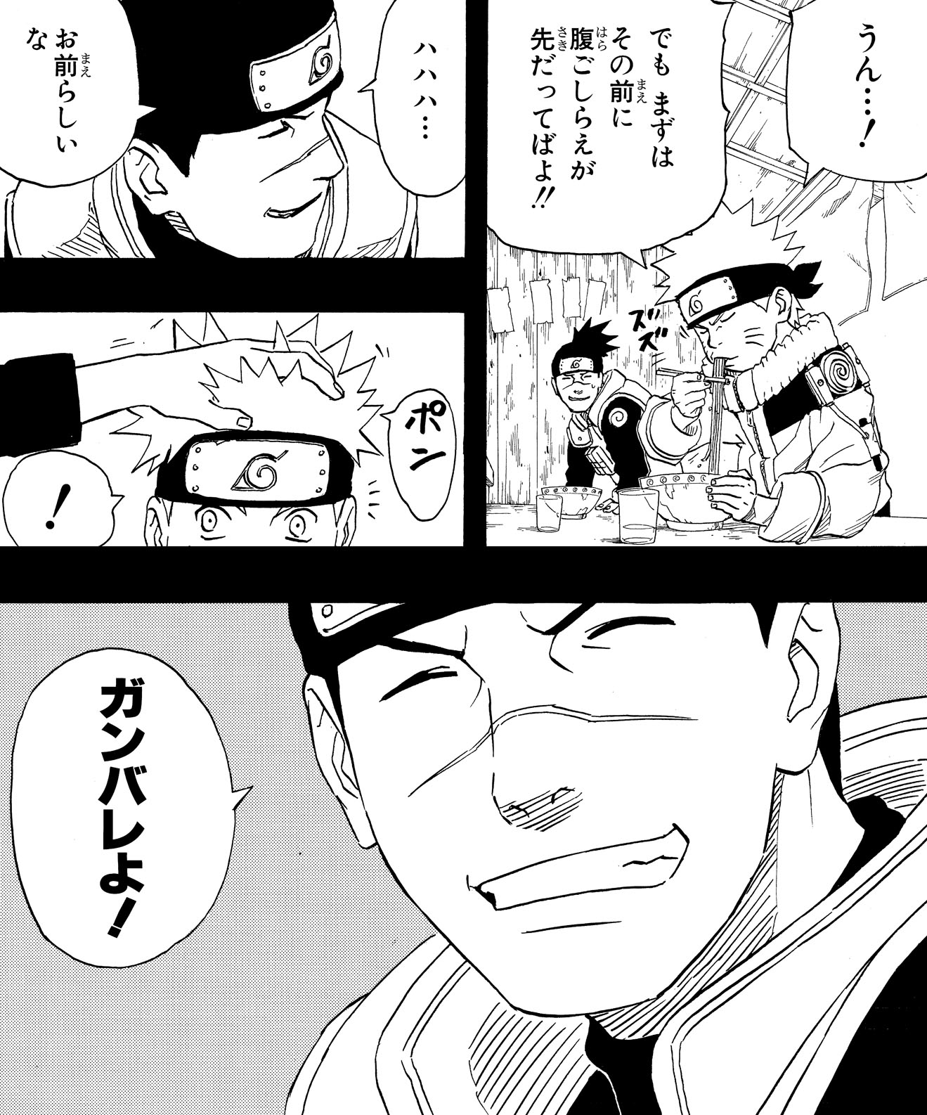 After Jiraiya's death, Iruka is there for Naruto when he gets lost in his grief.