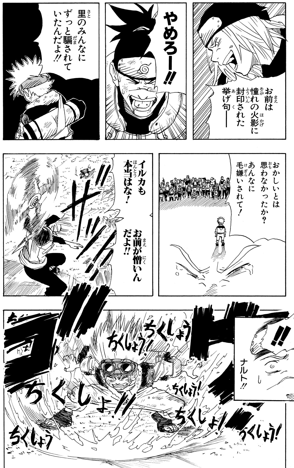 Iruka's speech inspires Naruto, and he shows a level of skill he's never been capable of before, defeating Mizuki!