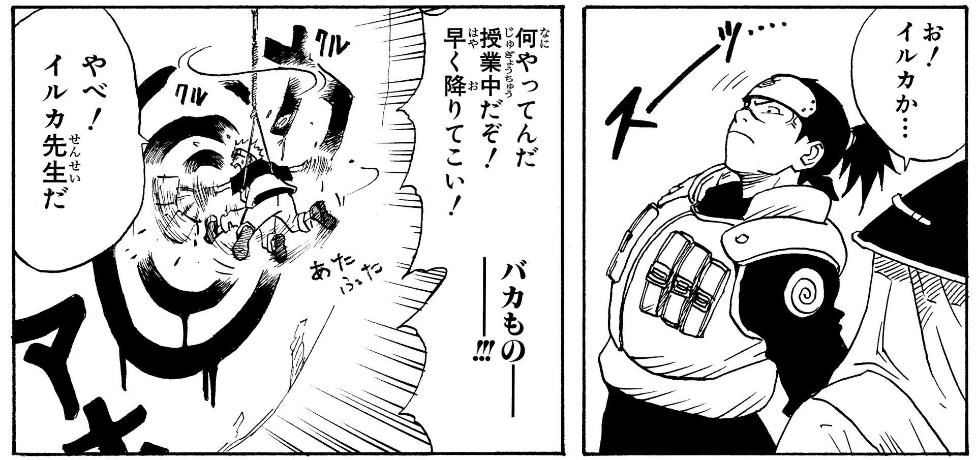 To hide his pain and earn acknowledgement from his peers, Iruka acts out in school, playing pranks and becoming the class clown.