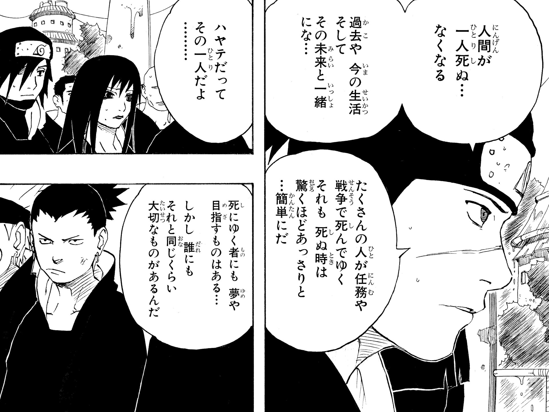 The ninja of the Leaf Village are able to put a stop to his plan, but at a great cost in lives.