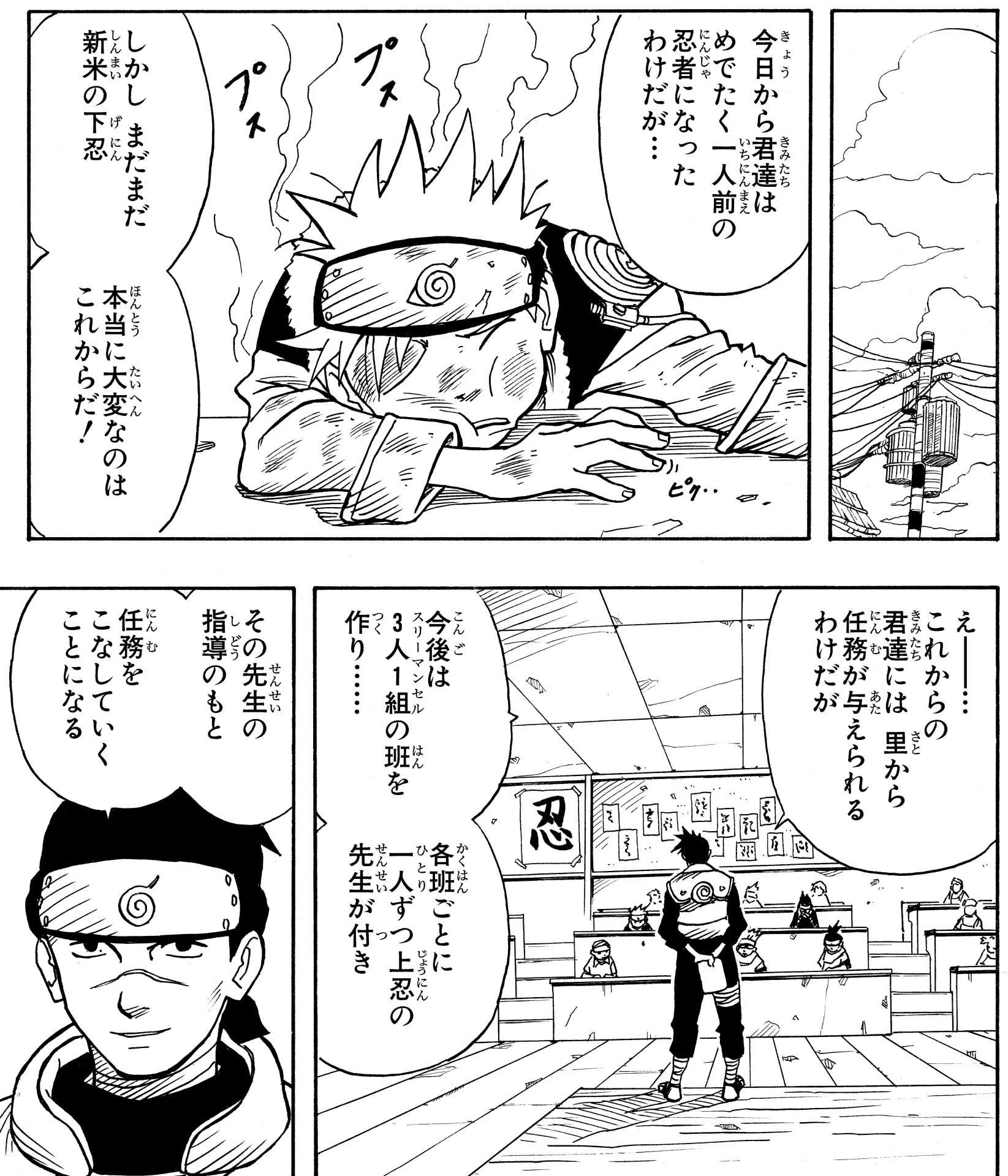 Iruka sends Naruto and his other students out into the world of shinobi.