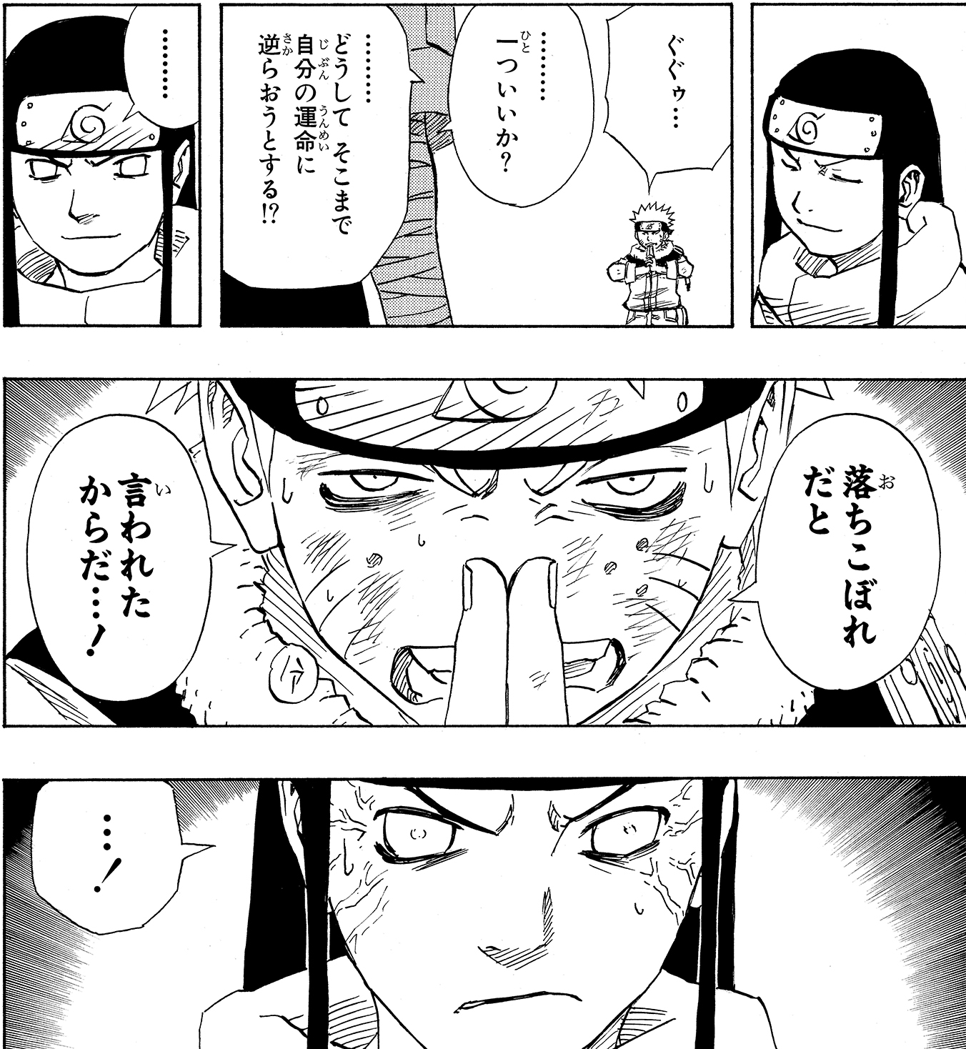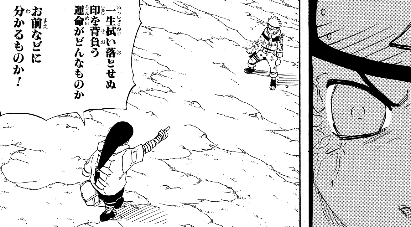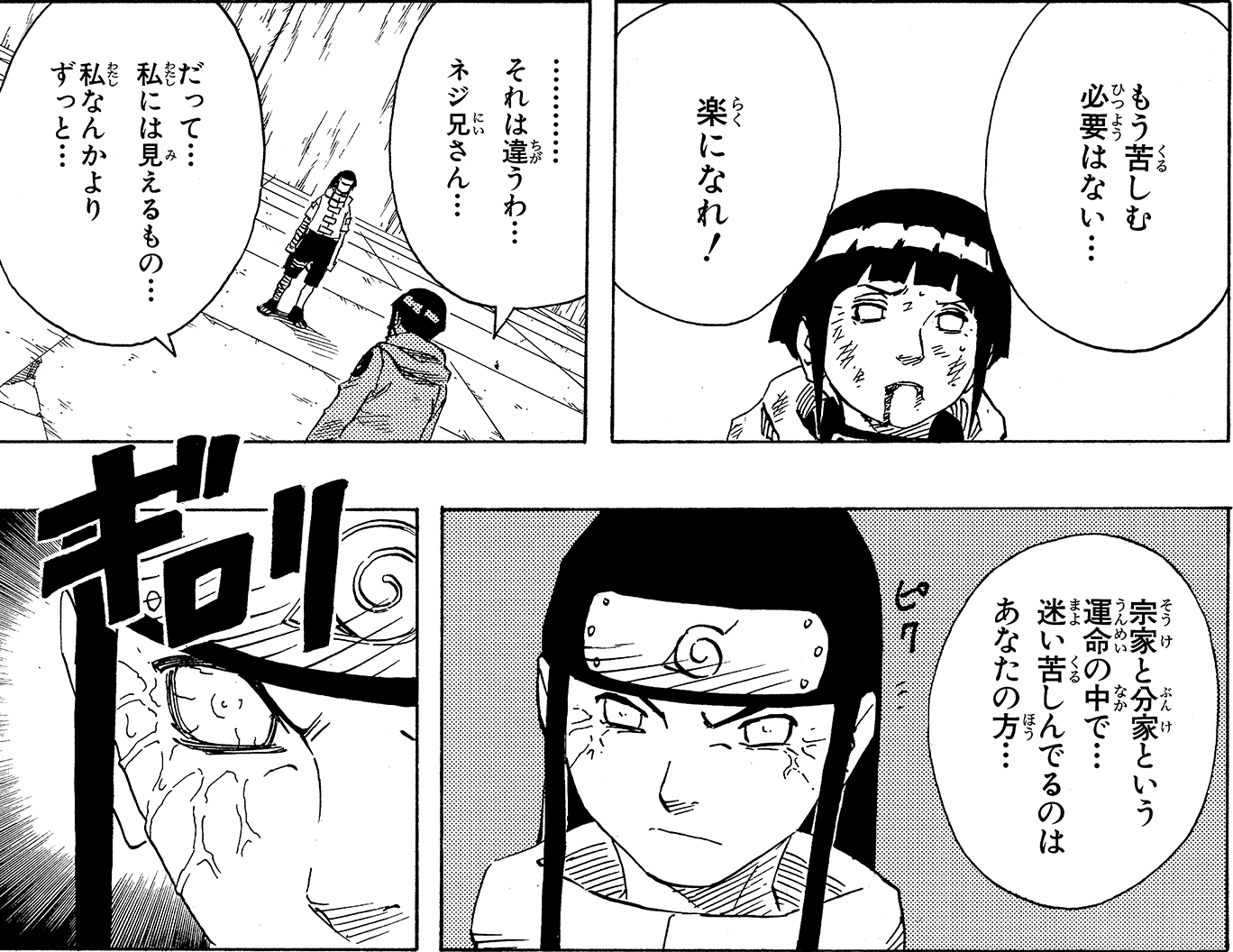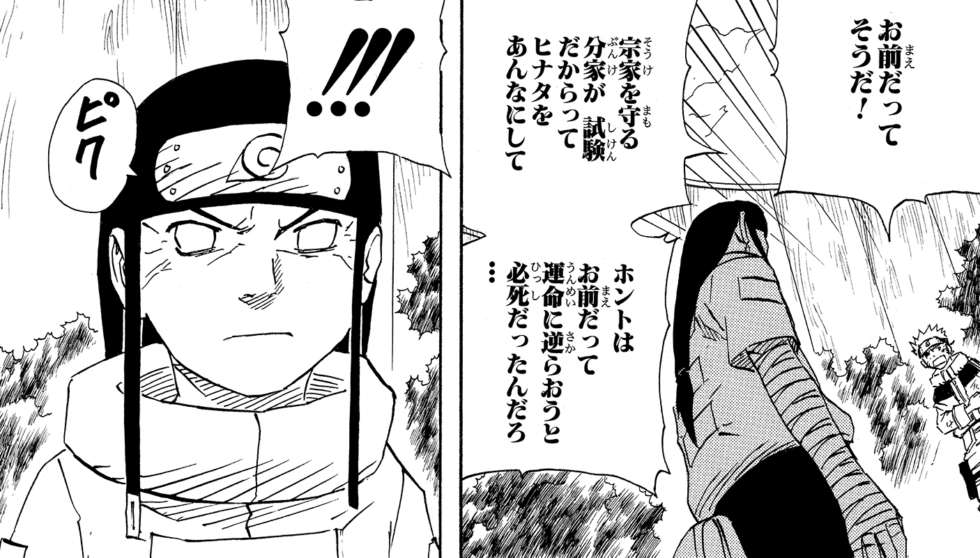 Hearing Neji's tale, Naruto realizes he understands Neji to a surprising degree. He cuts right to the truth of the matter and straight to Neji's heart.