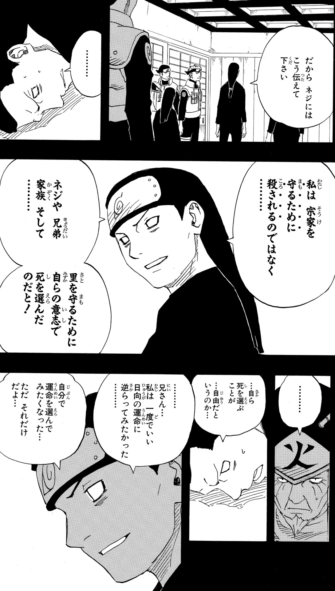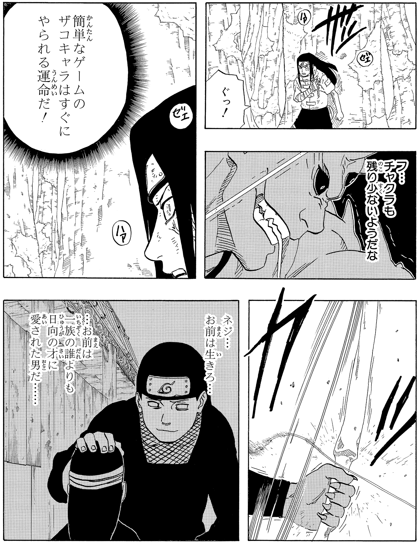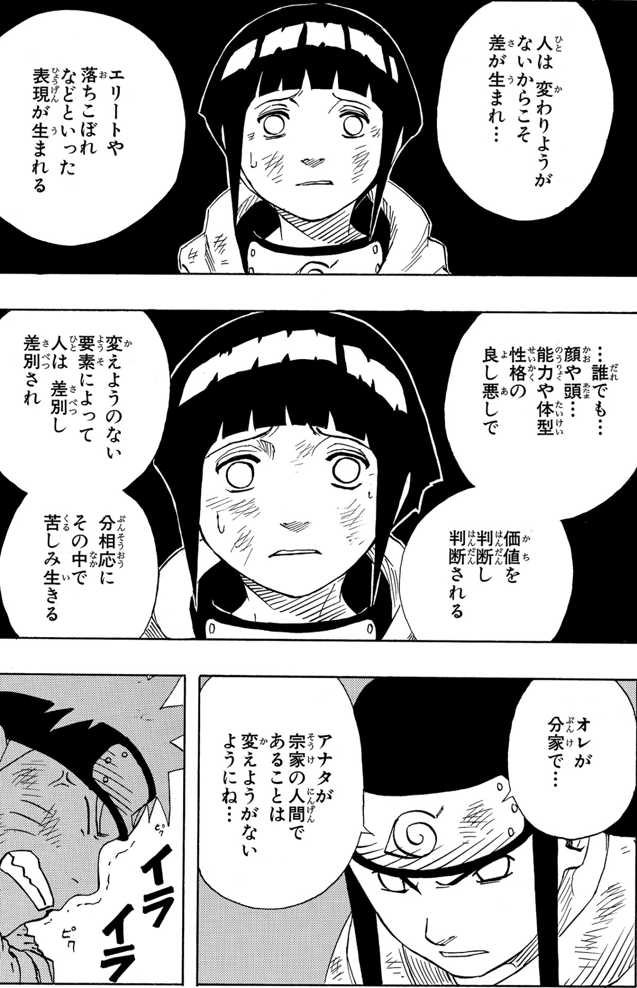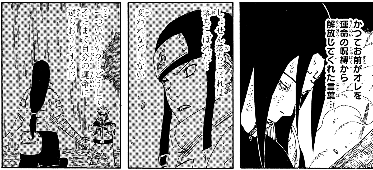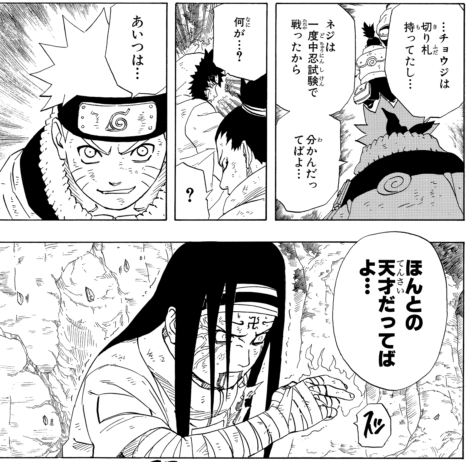 Hearing Neji's tale, Naruto realizes he understands Neji to a surprising degree. He cuts right to the truth of the matter and straight to Neji's heart.