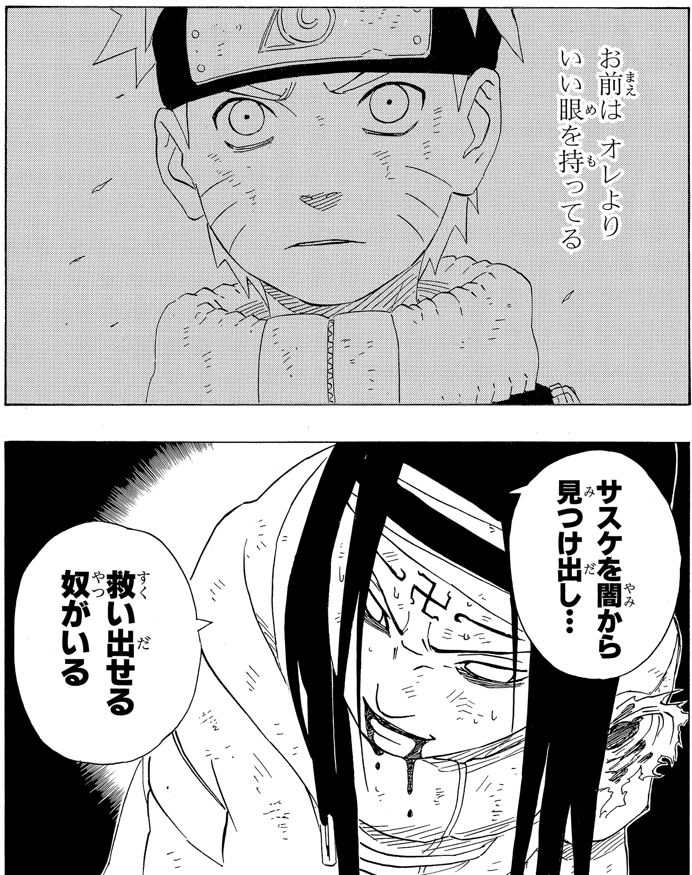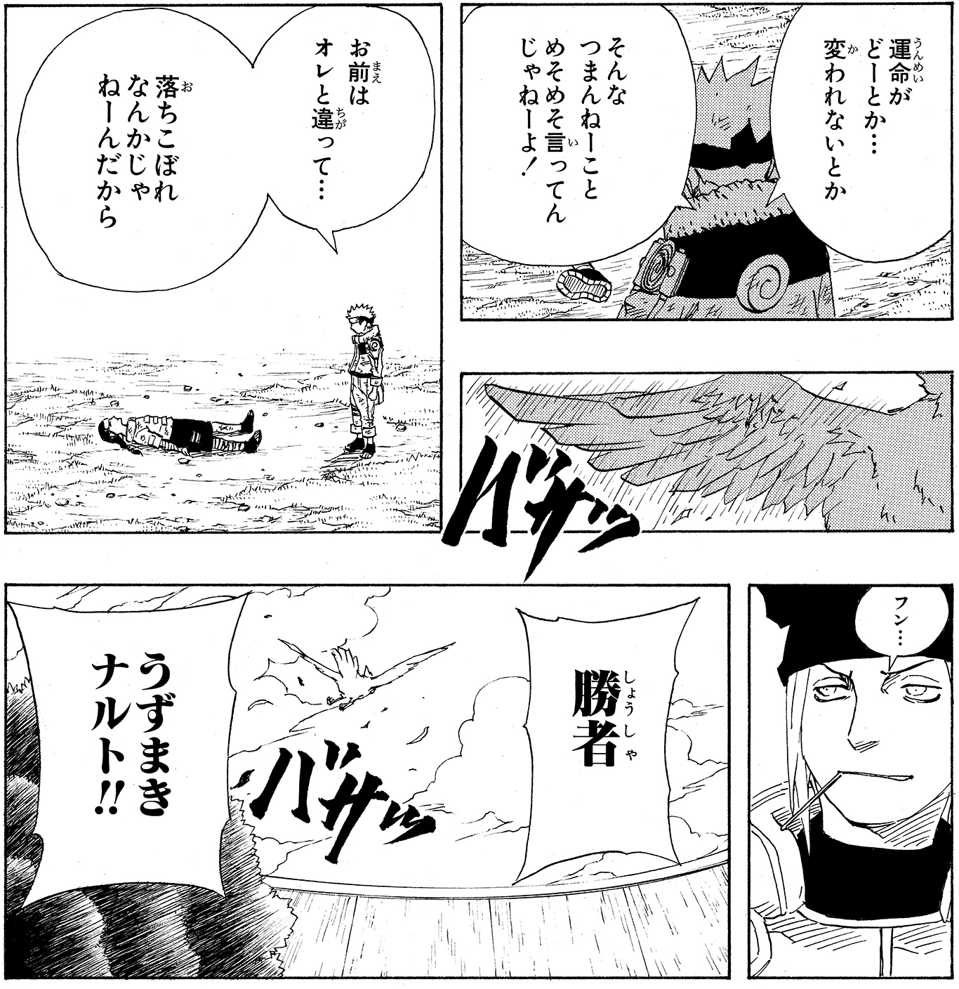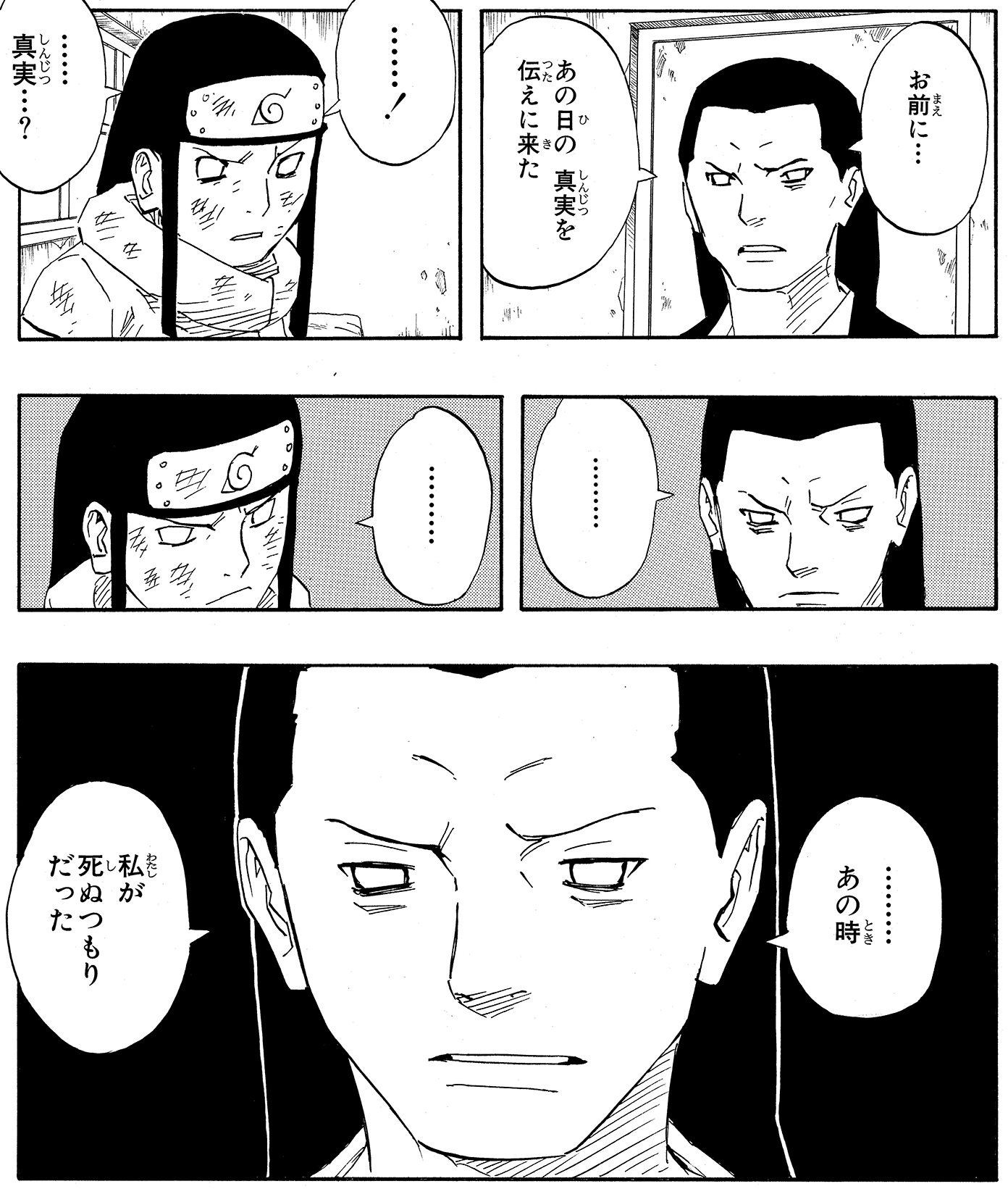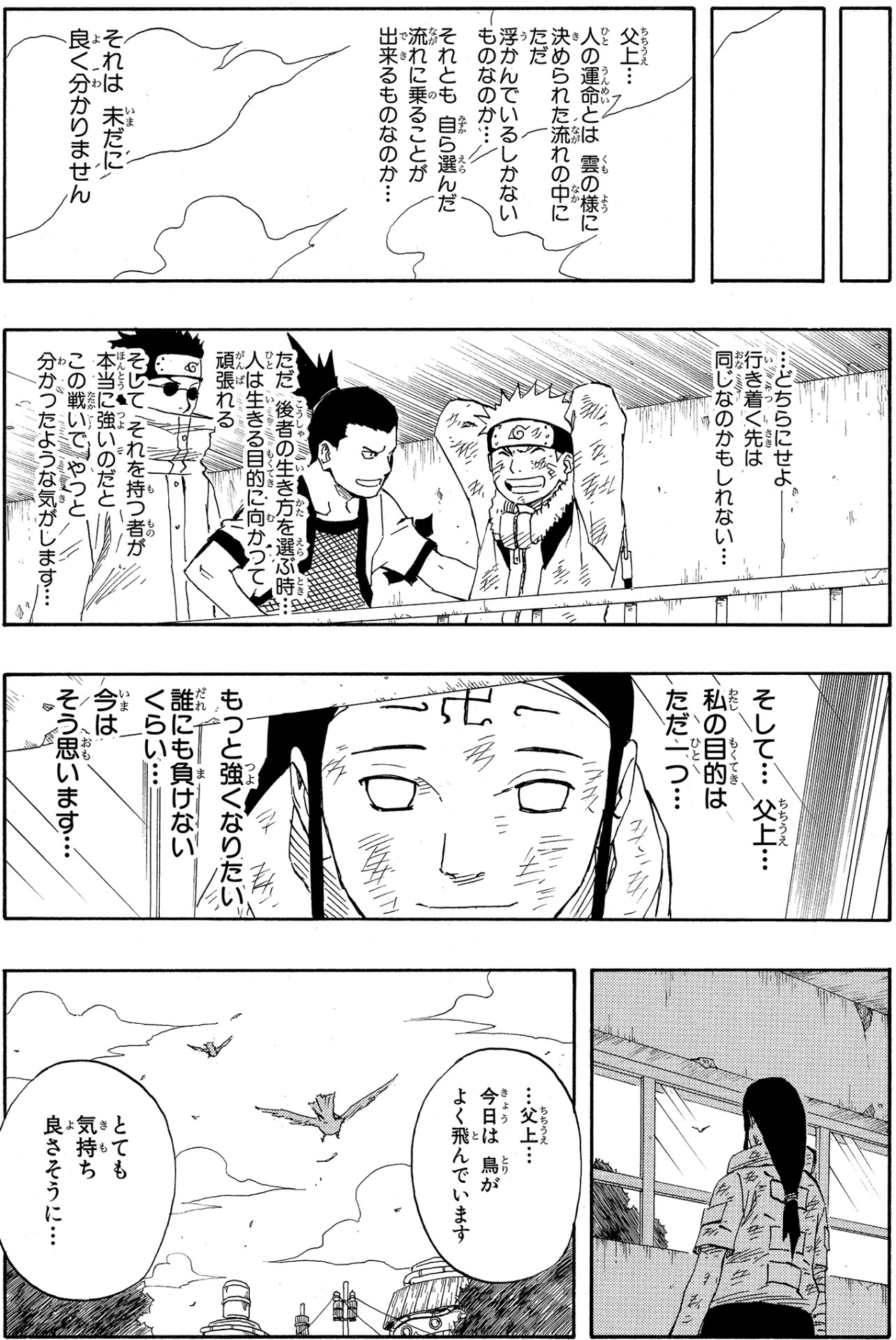 Hearing Neji's tale, Naruto realizes he understands Neji to a surprising degree. He cuts right to the truth of the matter and straight to Neji's heart.