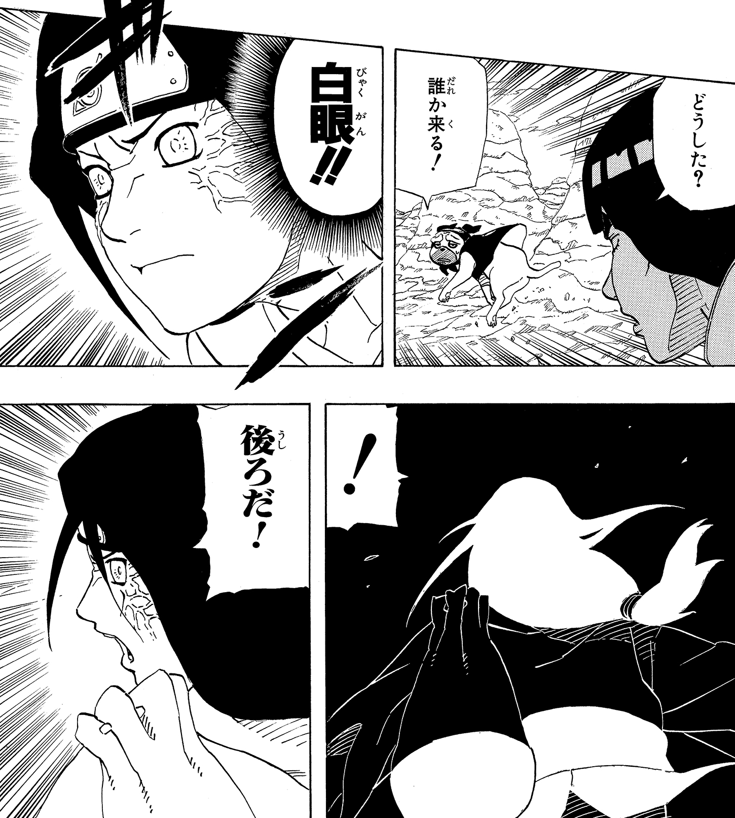 With nearly 360-degree vision, Neji has only one miniscule blind spot...and Kidomaru manages to find it.