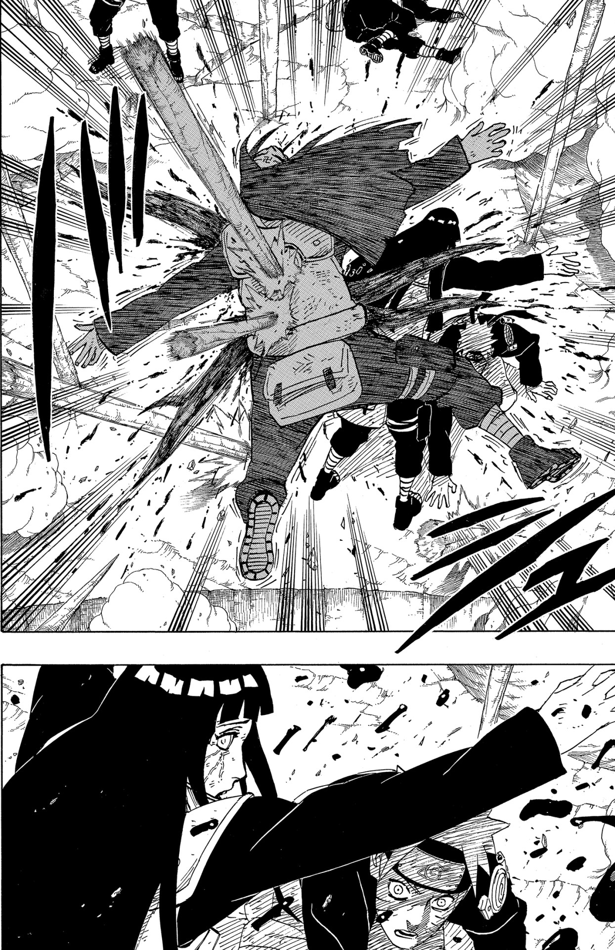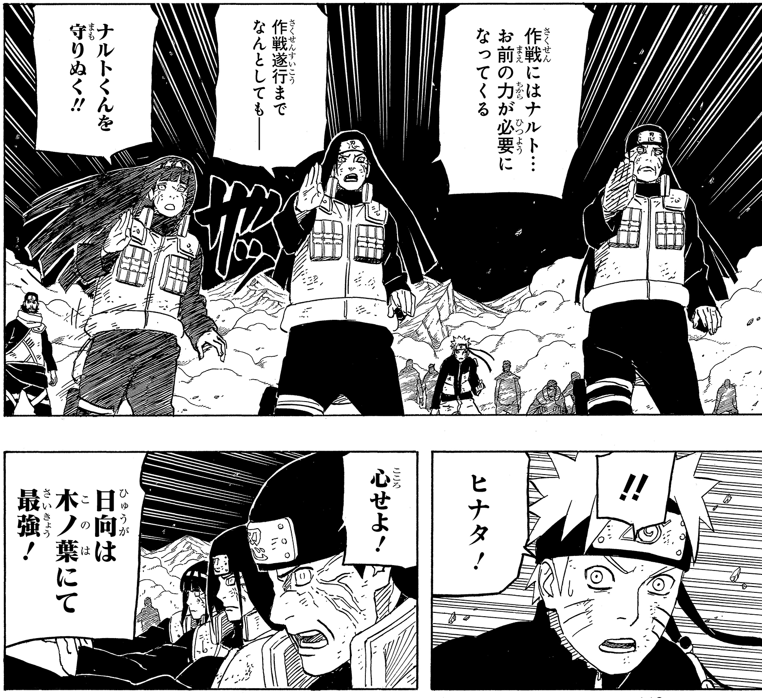 Naruto—whose presence is vital to the army's survival—is put in danger, and Hinata rushes in to cover him.