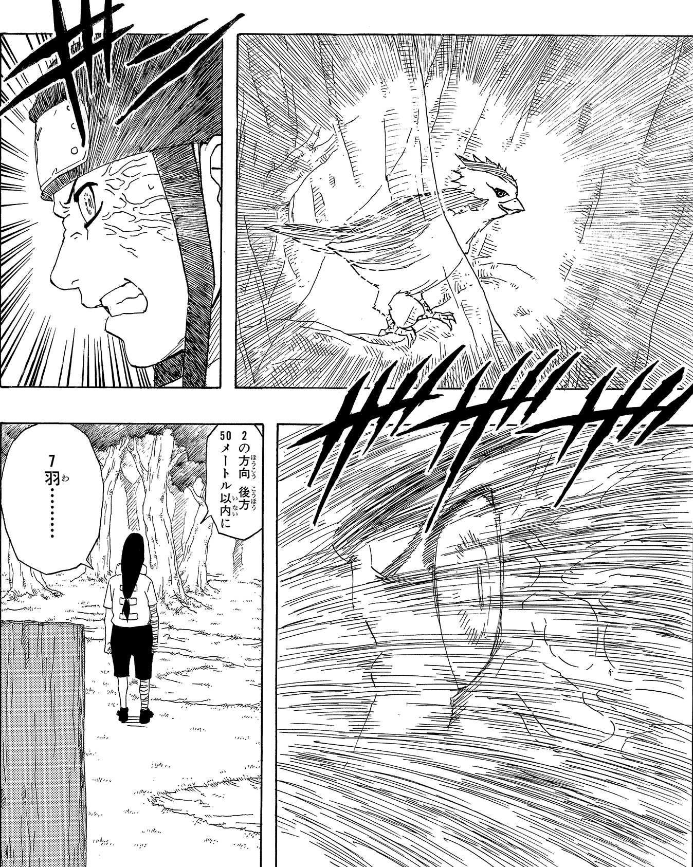 The squad catches up to the Sound Four, but the enemy simply leaves one member behind to buy time before continuing on, forcing the ninja from Konoha to do the same.