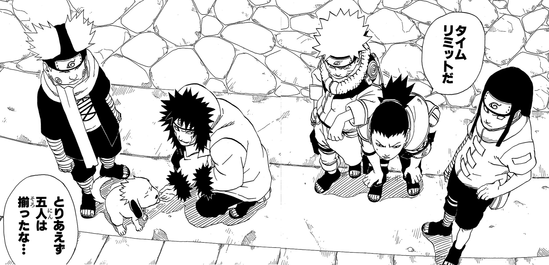 Even though they fail to retrieve Sasuke, all five members of the team led by Shikamaru return alive.