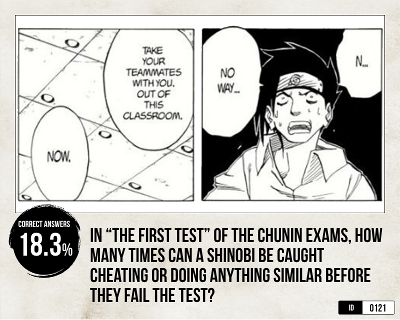 Season 1 of the quiz covered volumes 1-19 (chapters 1-171) of the Naruto manga.