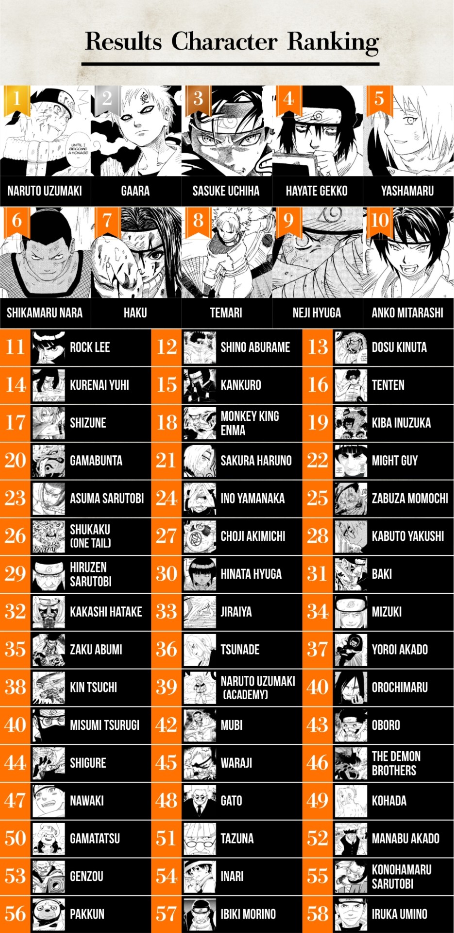Naruto proudly takes first place! The first three spots were very close-fought.