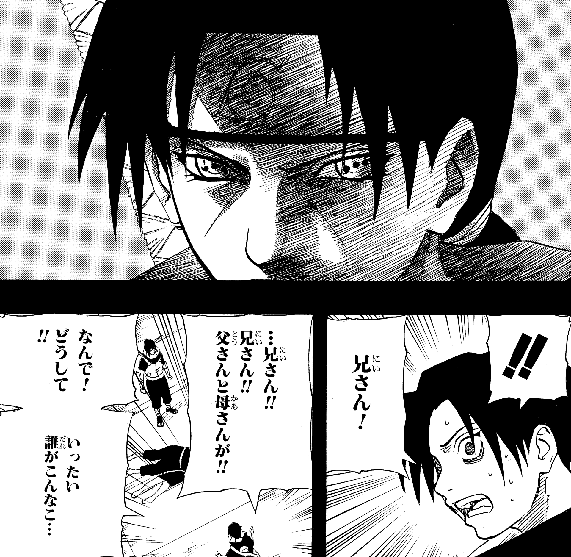The brother who was always so kind to him slaughters their parents and clan, throwing Sasuke into a nightmarish new reality.