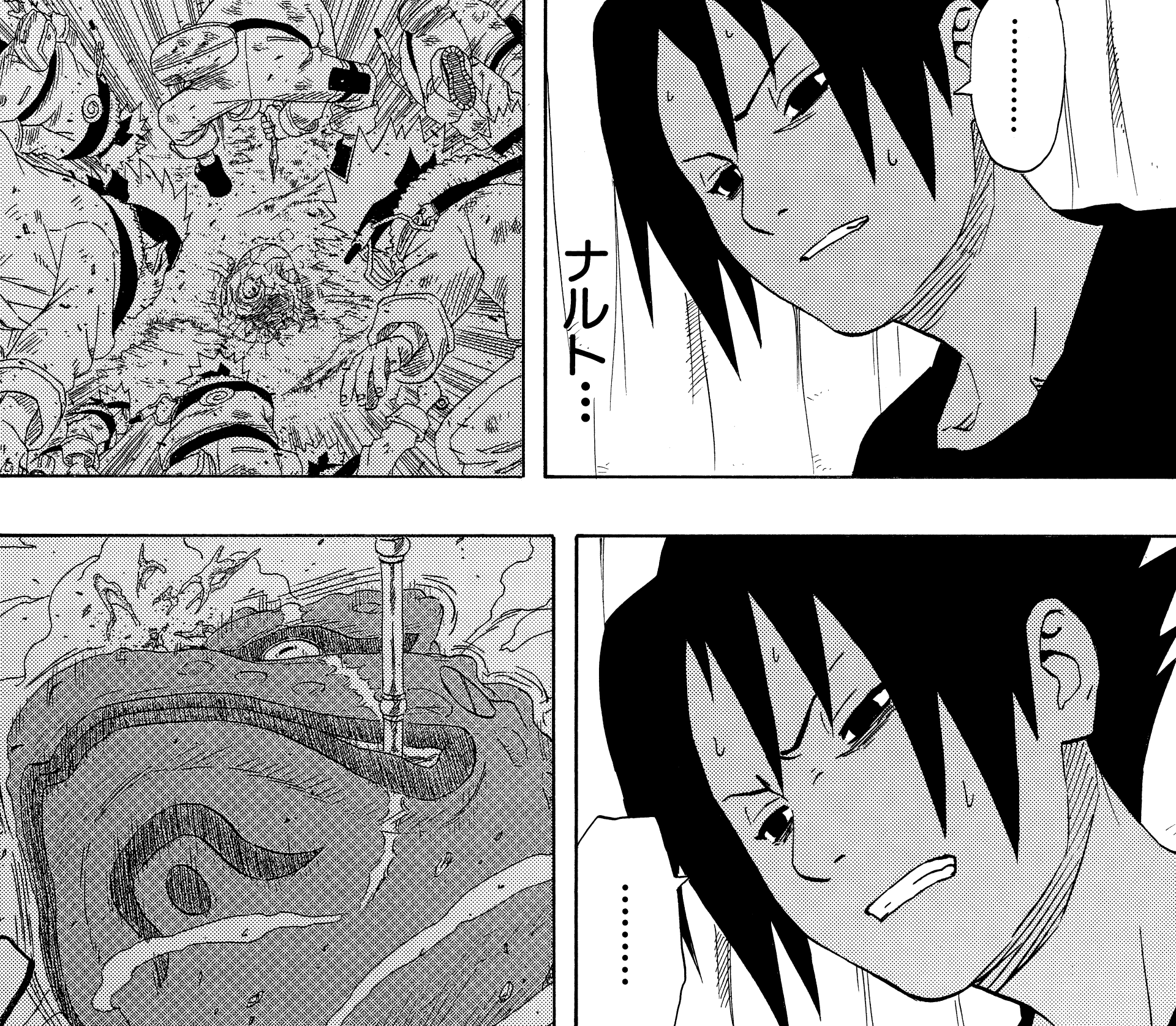 While deep down he is impressed by Naruto's rapid growth, at the time all Sasuke can feel is an overwhelming need to not fall behind.