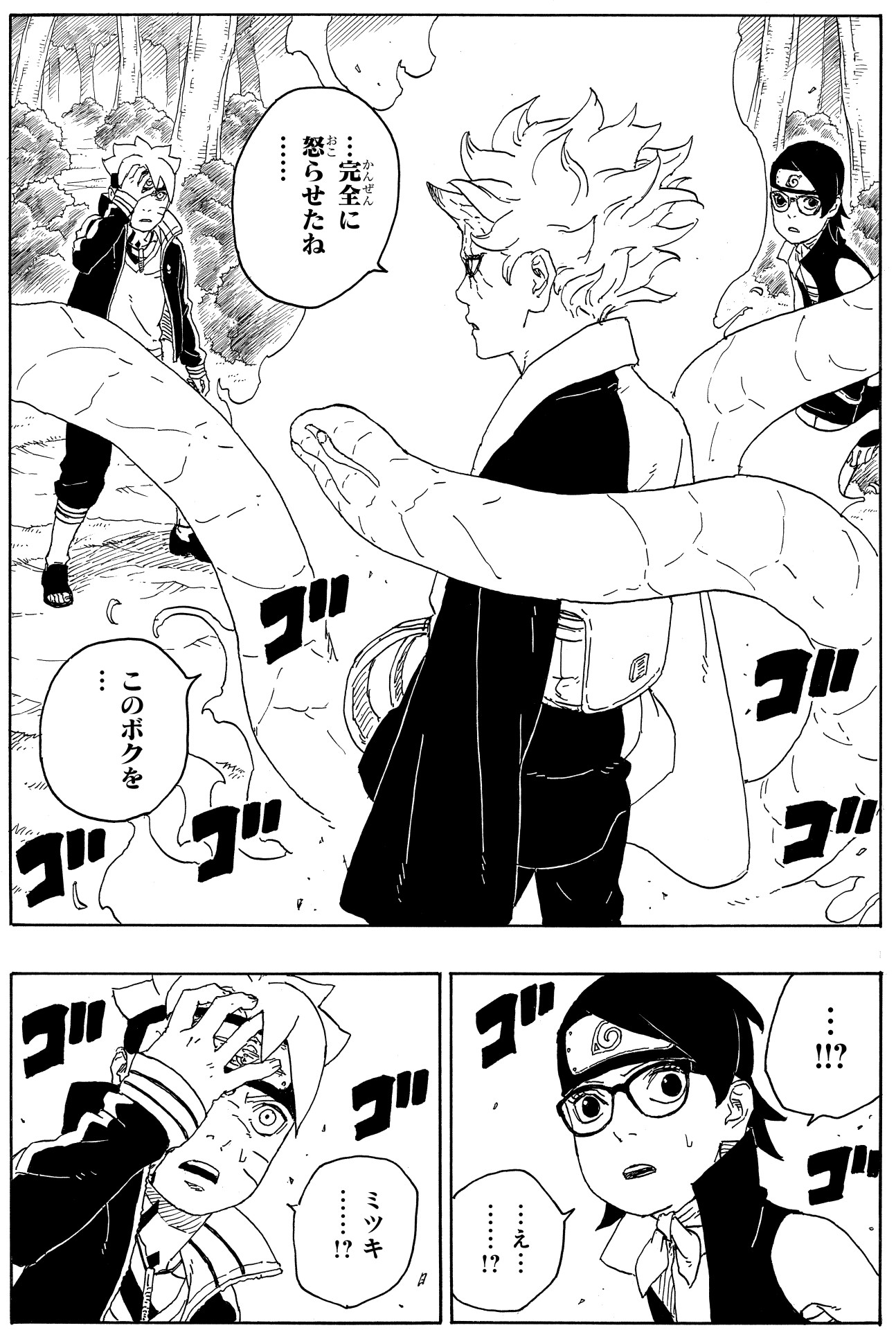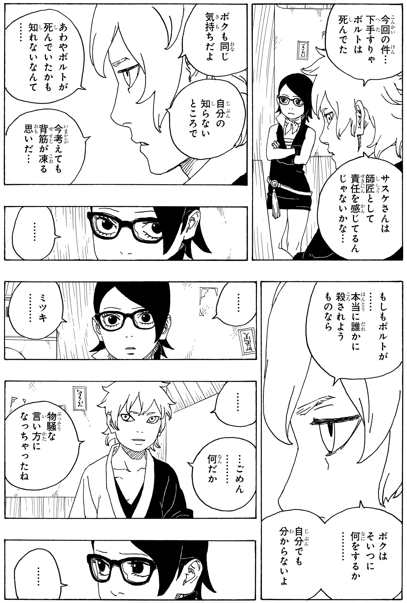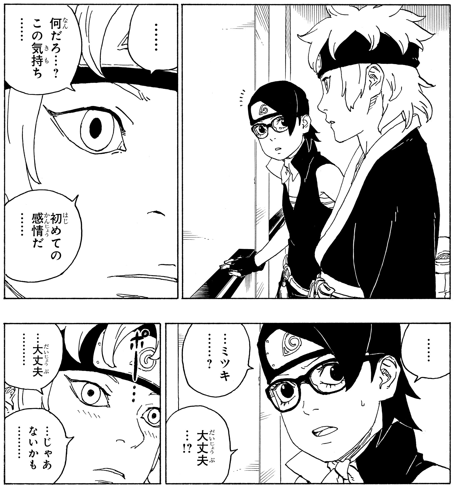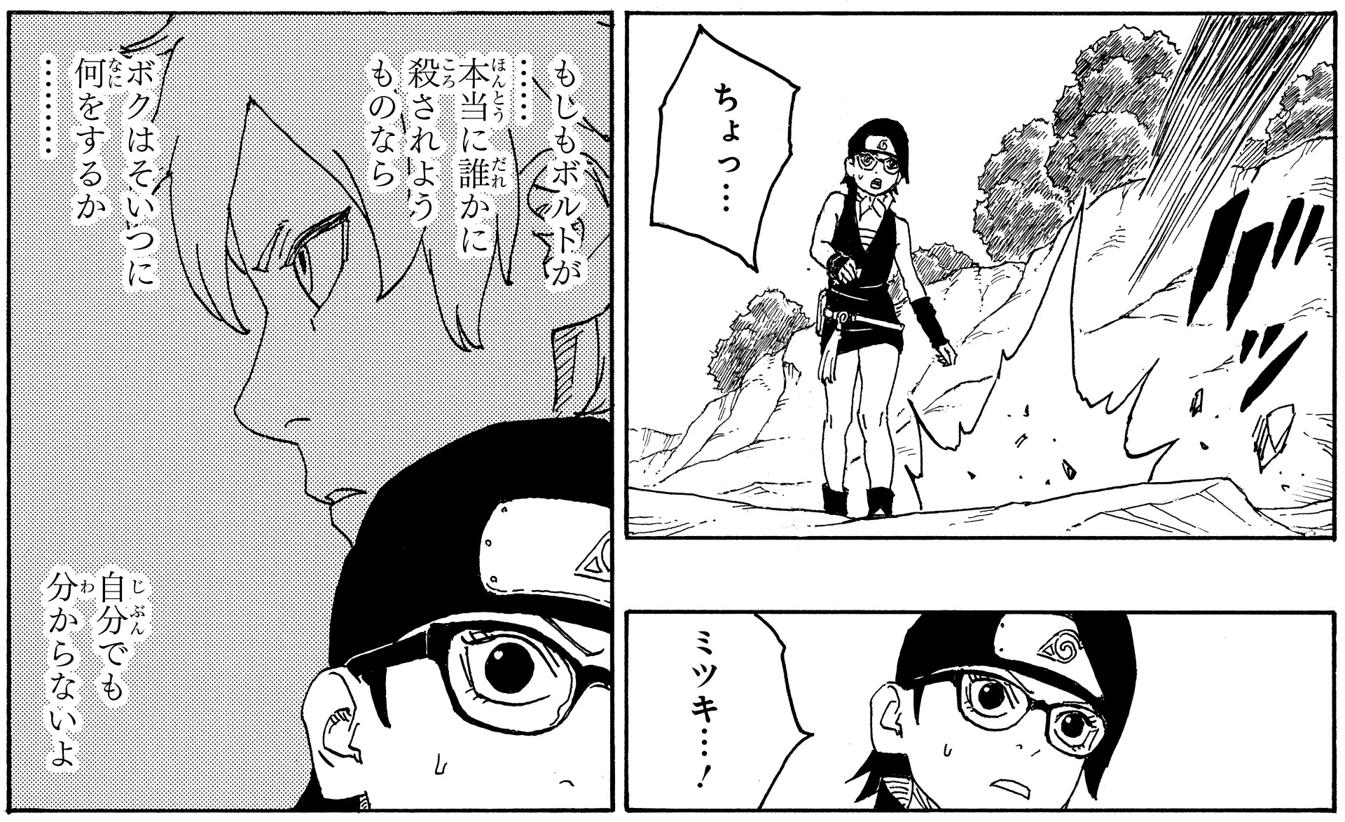 In the wake of this, Sarada and Mitsuki are filled with frustration at not having been able to protect their friend.