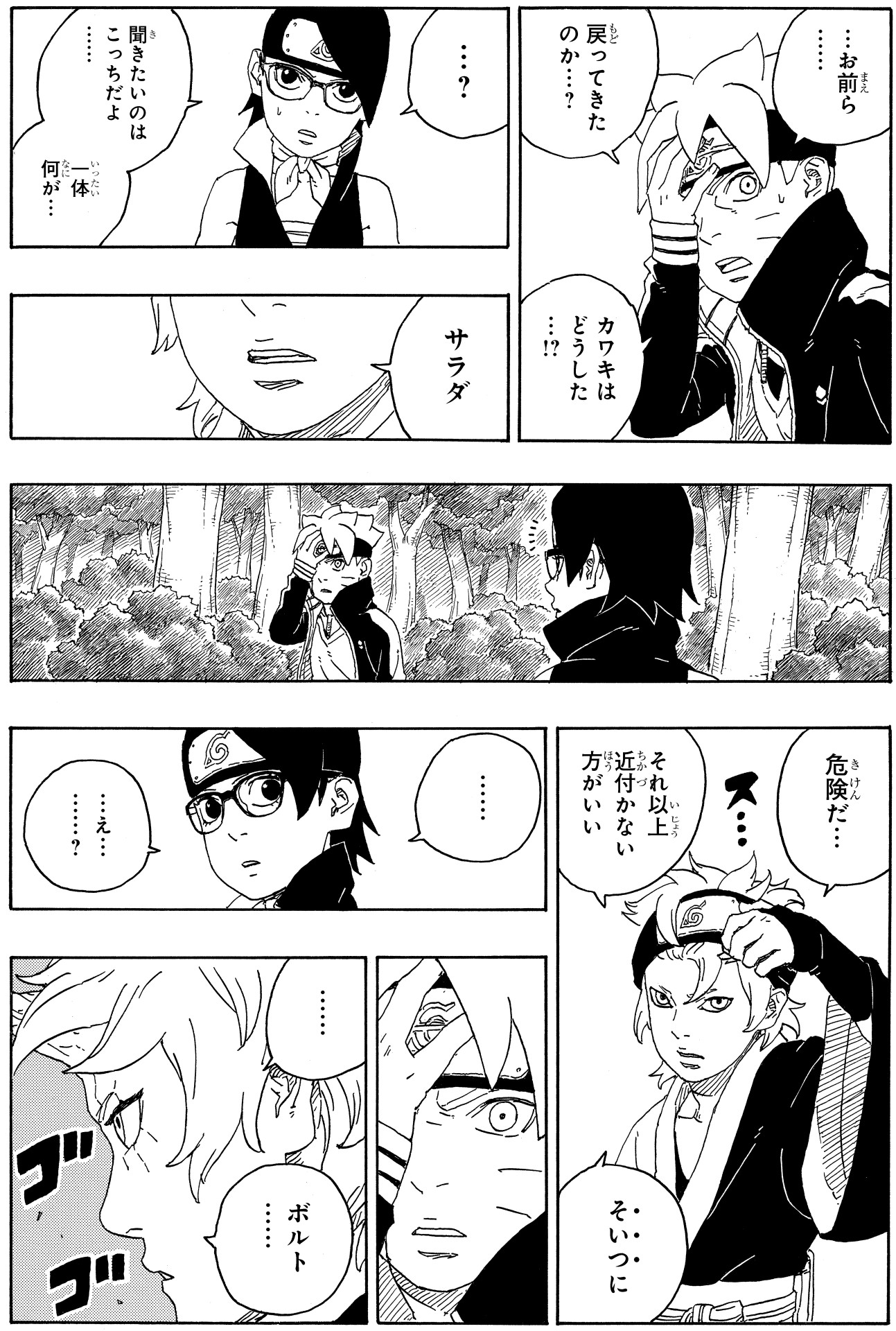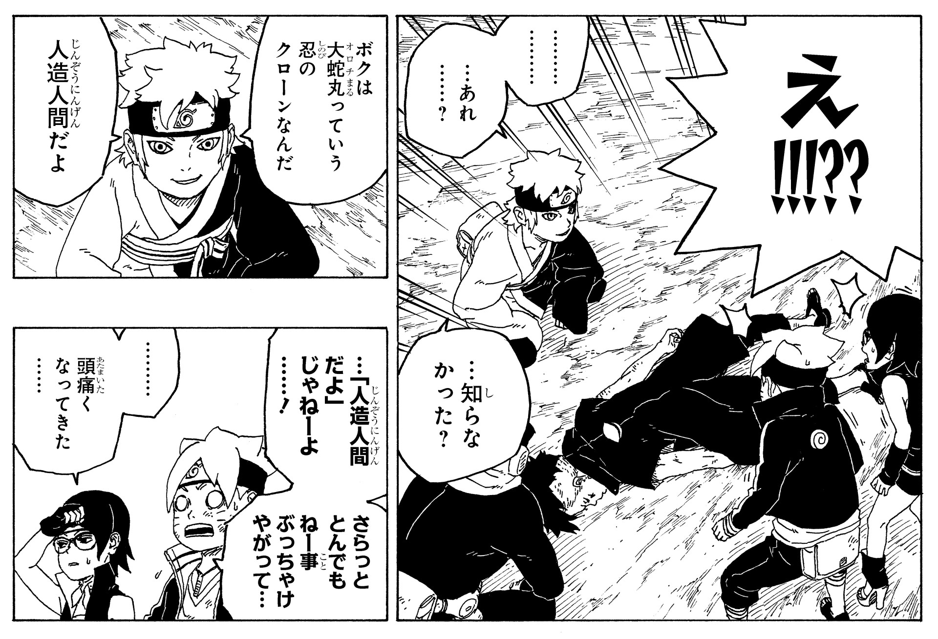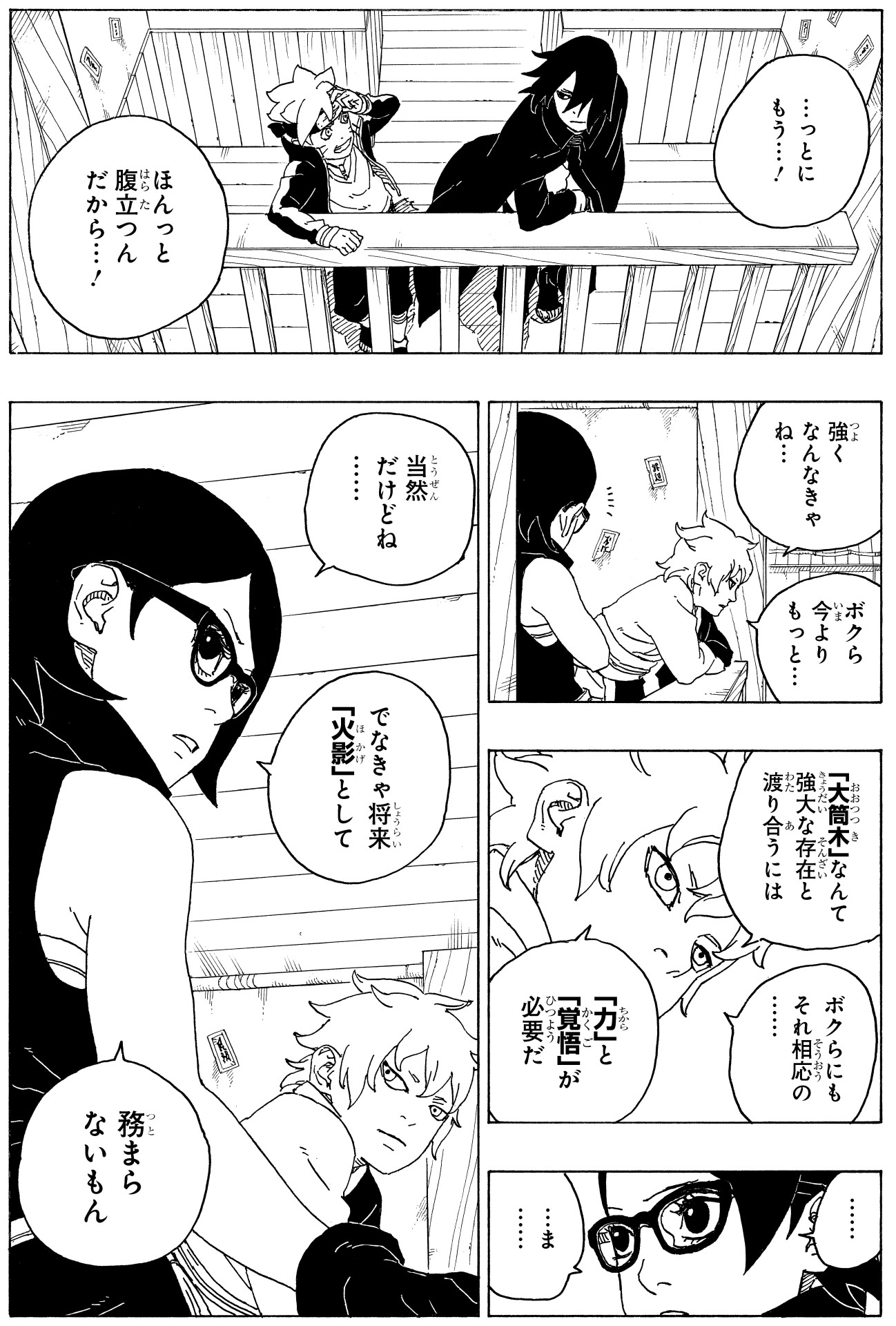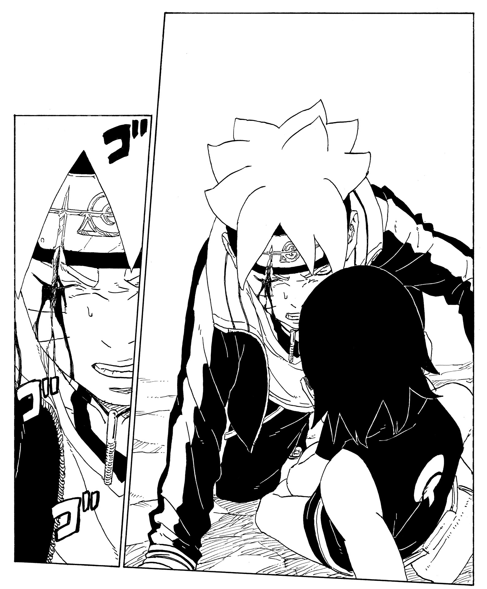 In the wake of this, Sarada and Mitsuki are filled with frustration at not having been able to protect their friend.