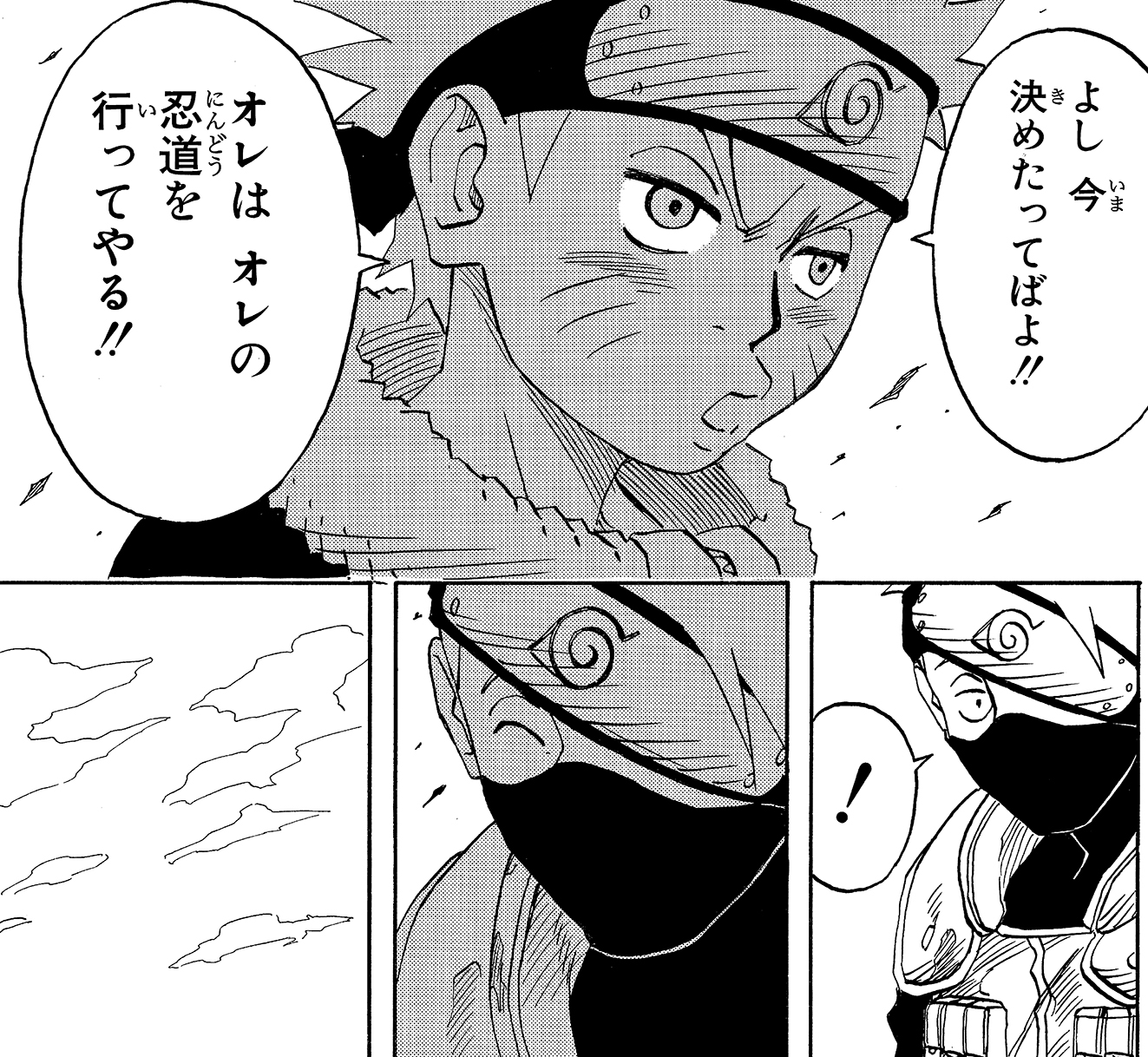 Hearing the strength of Naruto's resolve, Kakashi takes a risk and bets on Naruto, deciding to support his attack.