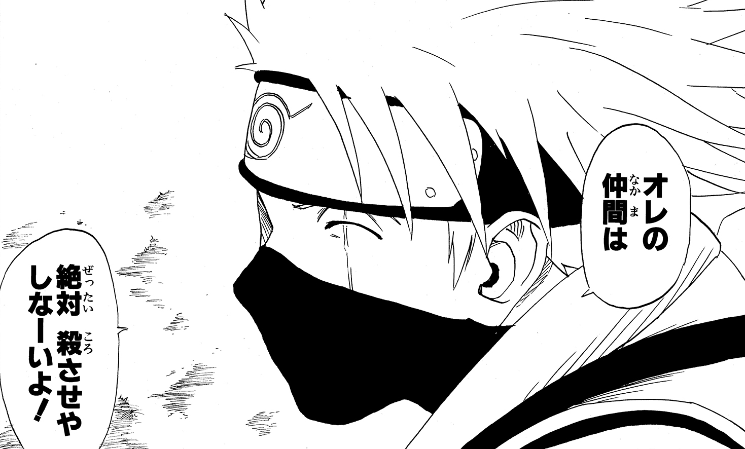 Kakashi's soft smile and casual speech conceal an iron will, and with those words he engages in a deadly battle.