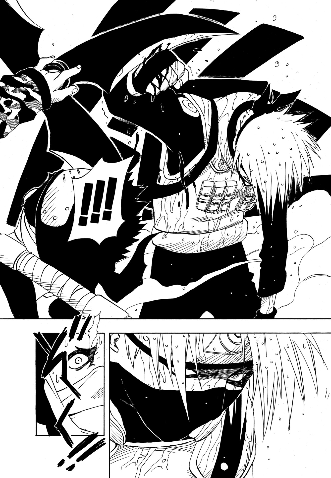 Despite several Jonin working together to oppose him, they are defeated and Kakashi is hospitalized.