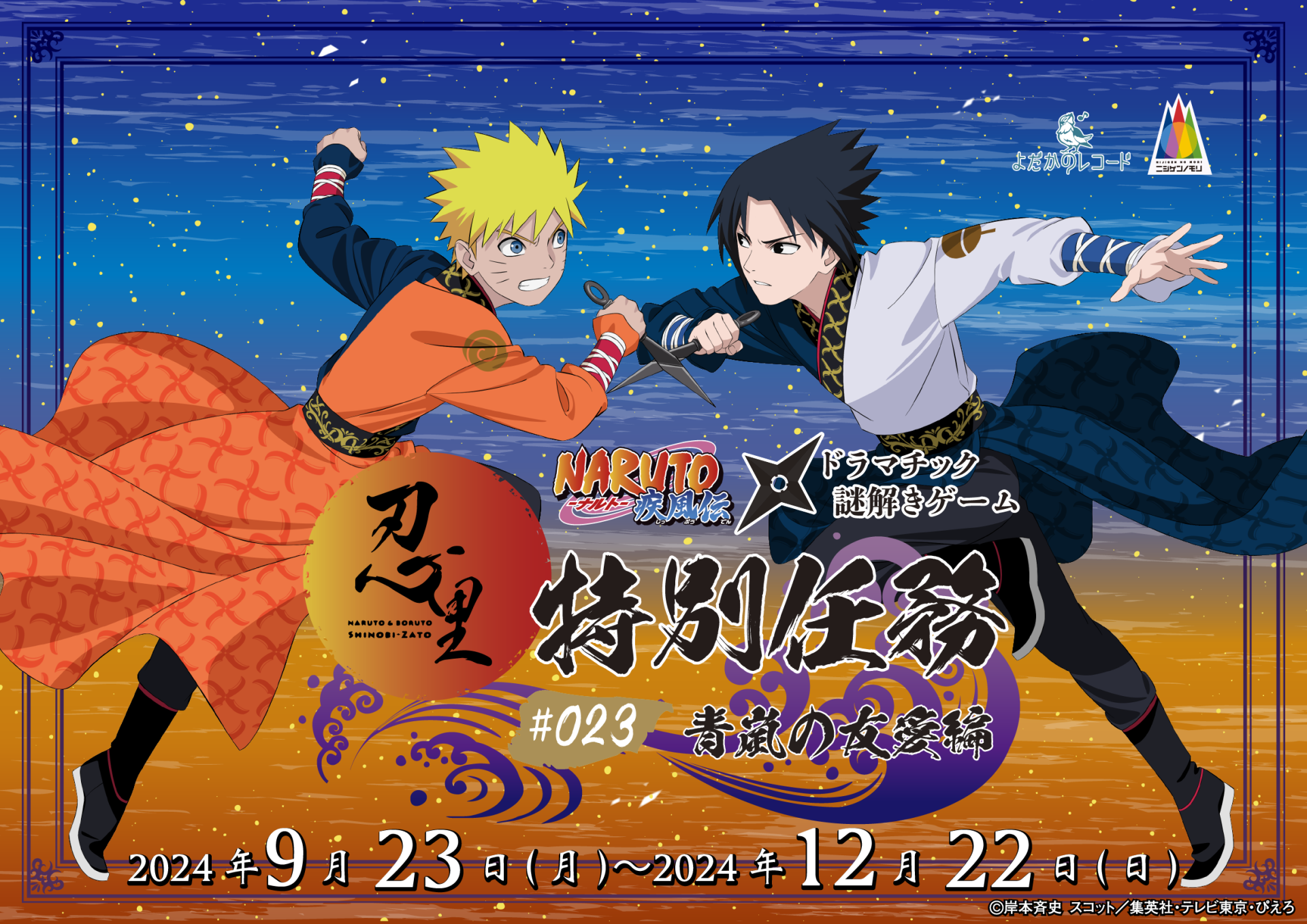 The Newest Special Mission at Nijigen no Mori's NARUTO & BORUTO Shinobi-Zato! Naruto & Sasuke's Adventure, "Friendship in the Azure Tempest", Starts 9/23 (JST)!
