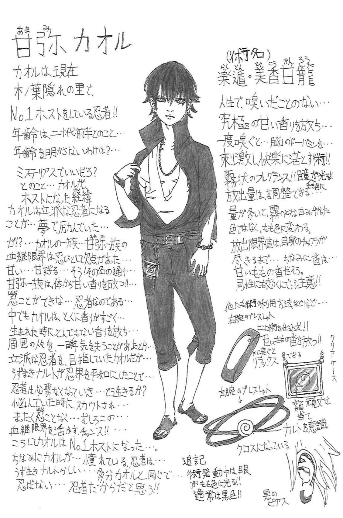 Kaoru is a ninja who currently works as the Hidden Leaf Village's number 1 host! He is in his early twenties. When asked why he keeps his exact age a secret he said, "We all love a good mystery, don't we?"