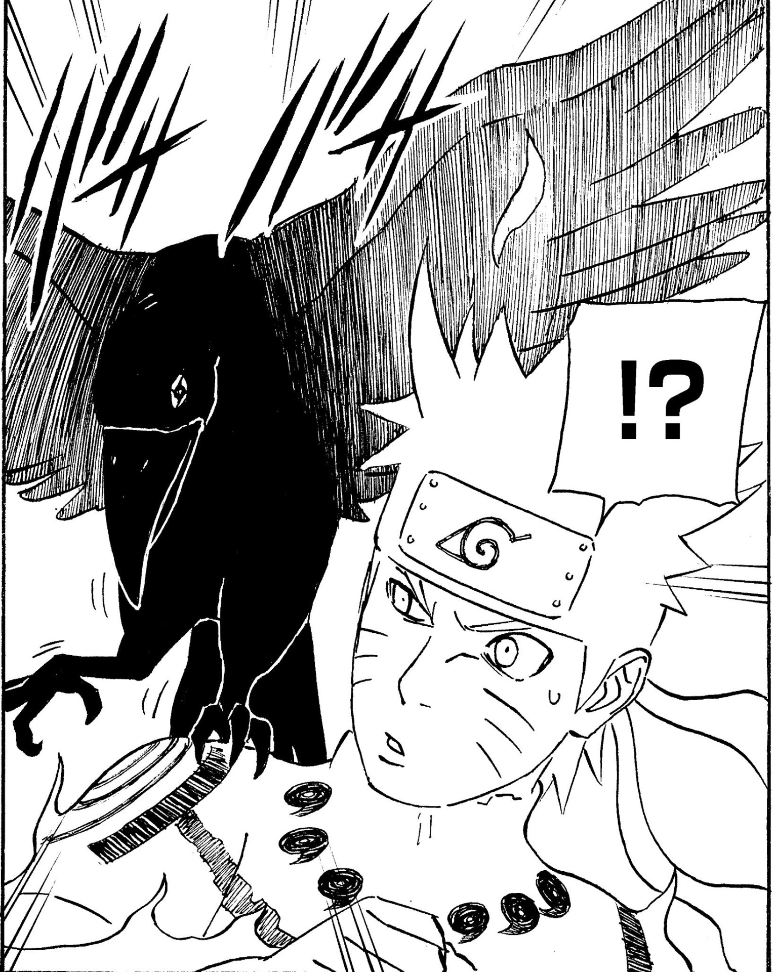 Despite being part of the battle-heavy Pain's Assault arc, this illustration is warm and relaxed. I love how you can feel the bond between master and student.
