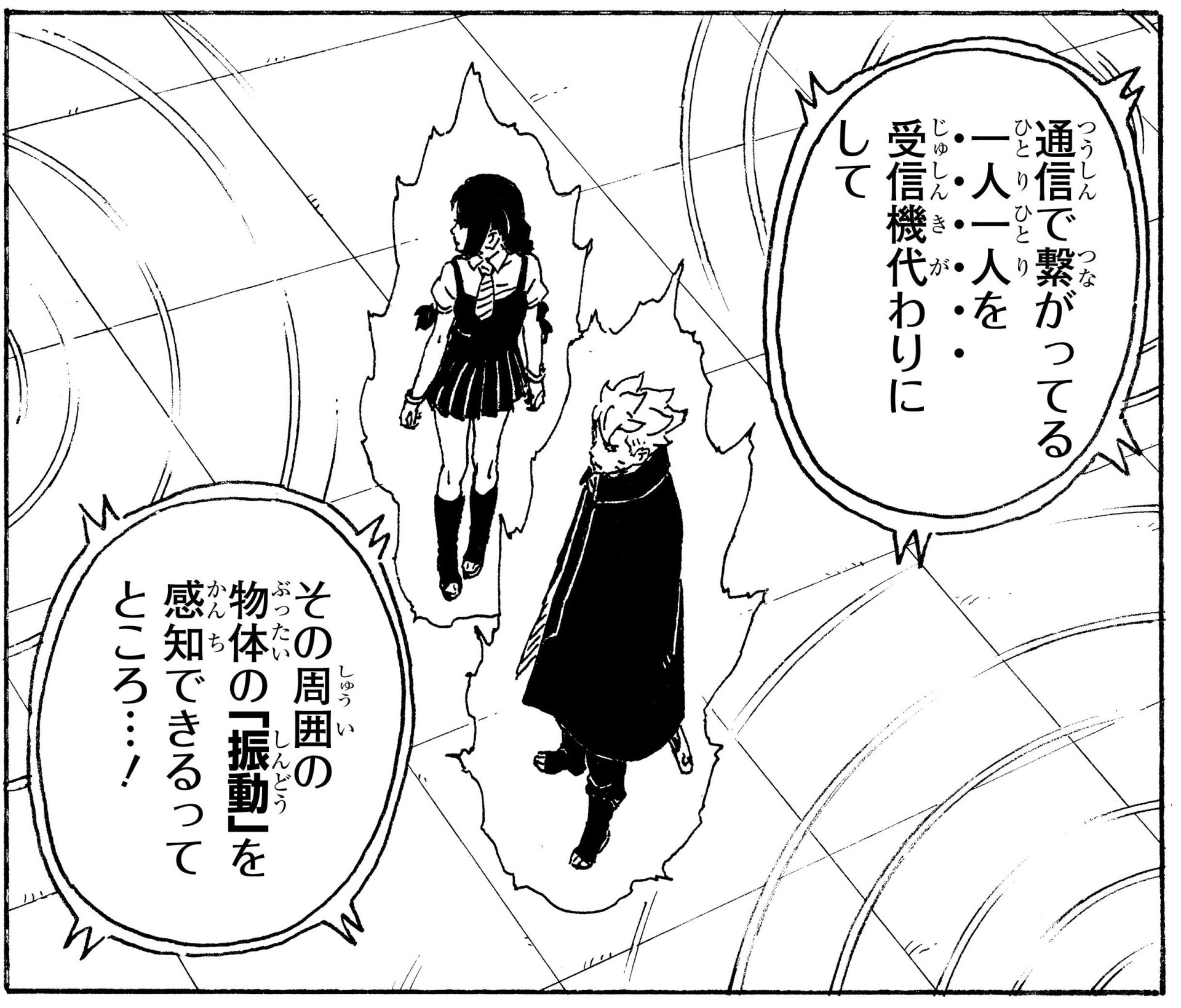 For instance, if Inojin is connected to Boruto through this transmission, he is able to discern the shape and nature of objects, as well as the spatial features and terrain, in the area surrounding Boruto. This allows him to pinpoint and track those who cannot be detected through chakra-sensing methods.