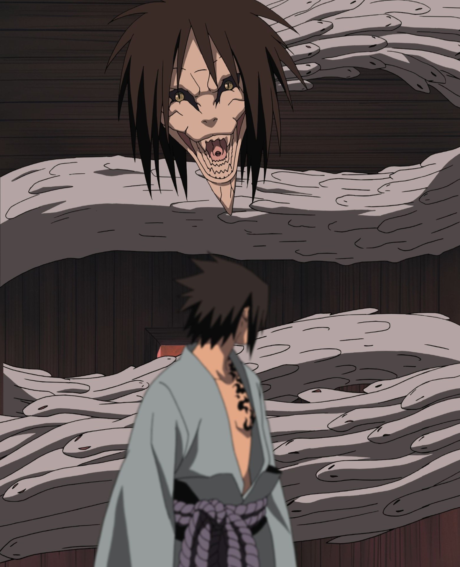 ¡La rebelión de Sasuke obliga a Orochimaru a revelar su verdadera forma como maestro y alumno en conflicto!