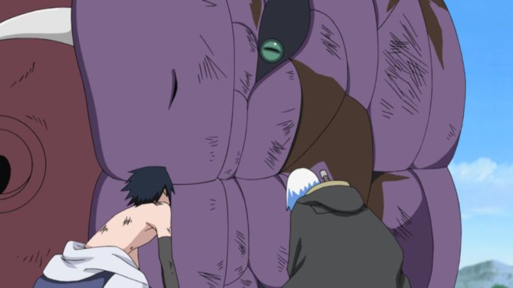 Sasuke se enfrenta uno a uno contra Killer Bee, quien emana un poder más allá de lo creíble.