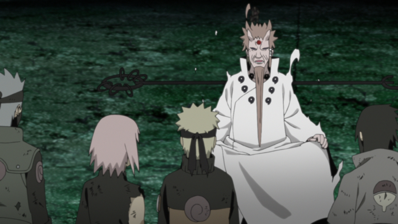 Después de contarle la historia de este conflicto entre hermanos y cómo se ha reflejado a lo largo del tiempo a través de interminables guerras entre shinobi, Hagoromo le pregunta a Naruto qué busca, qué espera obtener después de la guerra.