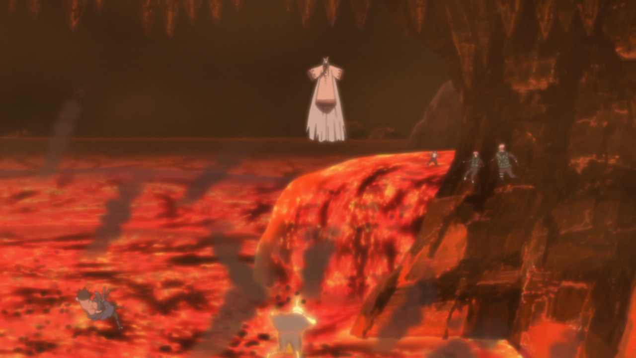 El equipo 7 casi es aplastado por una lluvia de meteoritos, pero Susano'o de Sasuke y Rasen-Shuriken de Naruto hacen que las rocas se conviertan en polvo.
