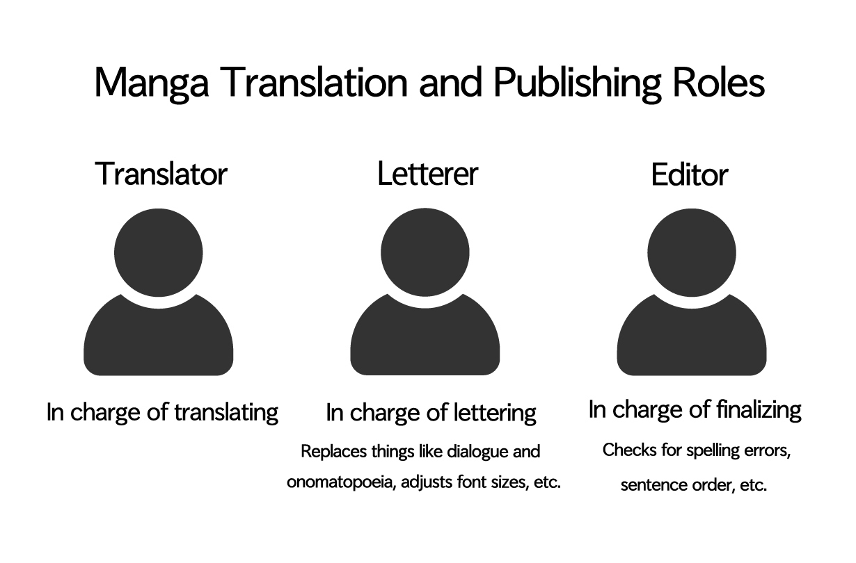 El letrista se encarga de borrar los diálogos y onomatopeyas en japonés y los intercambia por el texto en inglés, además de ajustar el estilo y el tamaño de las fuentes.