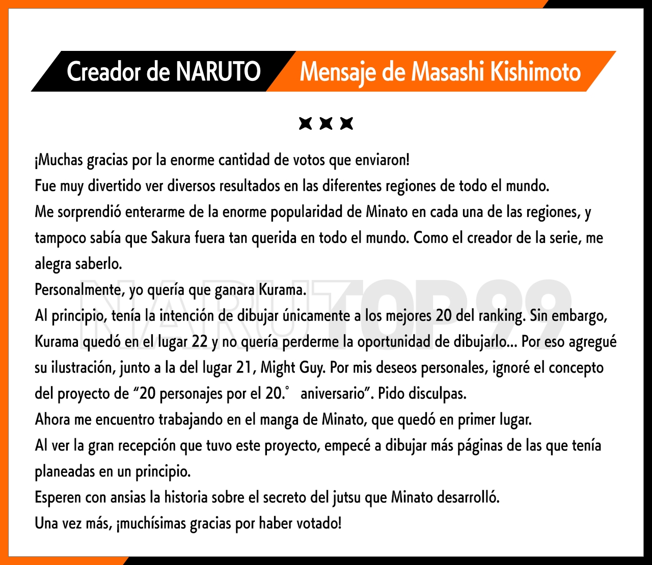 ¡También tenemos un mensaje del maestro Masashi Kishimoto!