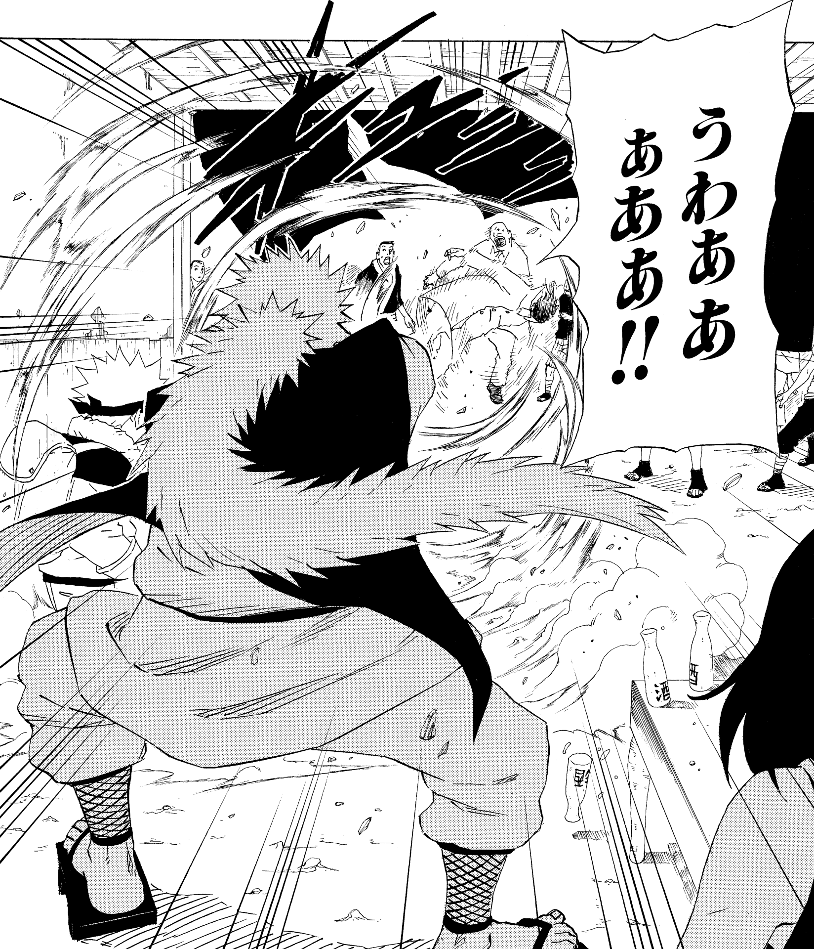¡Cuando se desata el ninjutsu de Jiraiya, todos salen volando!