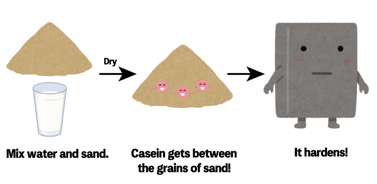 Lo cierto es que si mezclamos arena con leche y la secamos, se endurece. Para explicar esta combinación, primero separemos la leche.