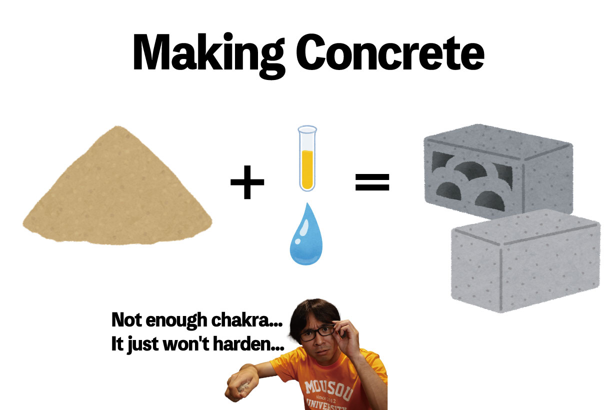 Poniendo un ejemplo cercano, el hormigón es un ejemplo de ello. El hormigón es básicamente una mezcla endurecida de arena con agua y productos químicos. En otras palabras, es duro porque se ha moldeado con unos “chakra” llamados agua y productos químicos.
