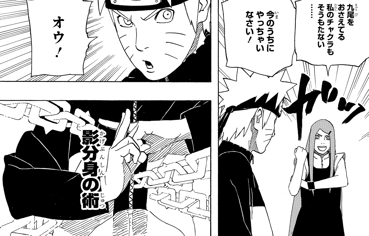 Kushina había vuelto para apoyar a Naruto. ¡Madre e hijo unen fuerzas para hacerle frente al Kyūbi!