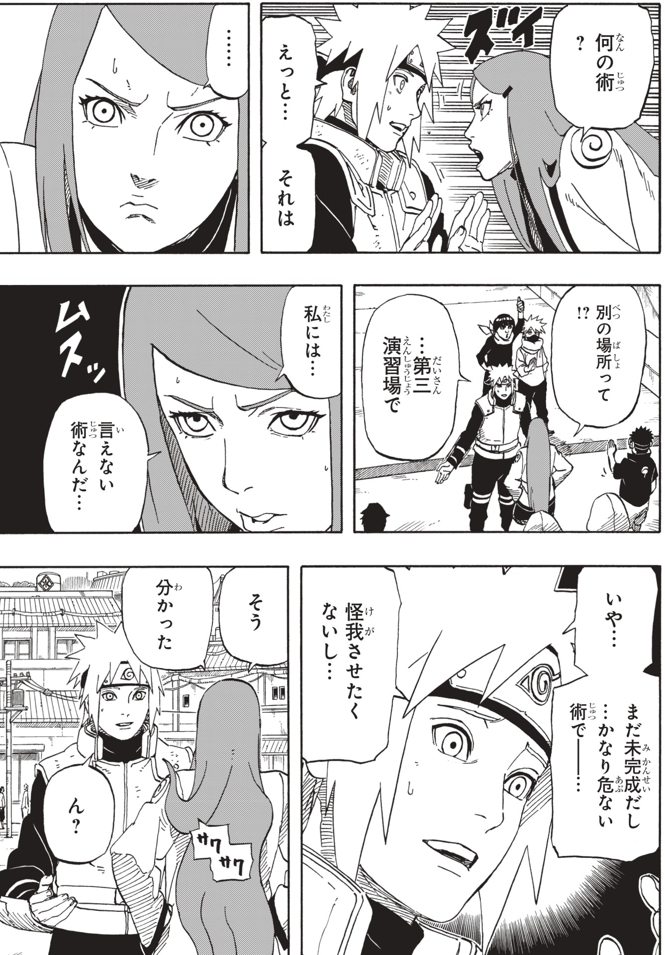 Kushina se dirige a la barrera no muy lejos de la Villa Oculta de la Hoja cuando su fecha de dar a luz se aproxima.