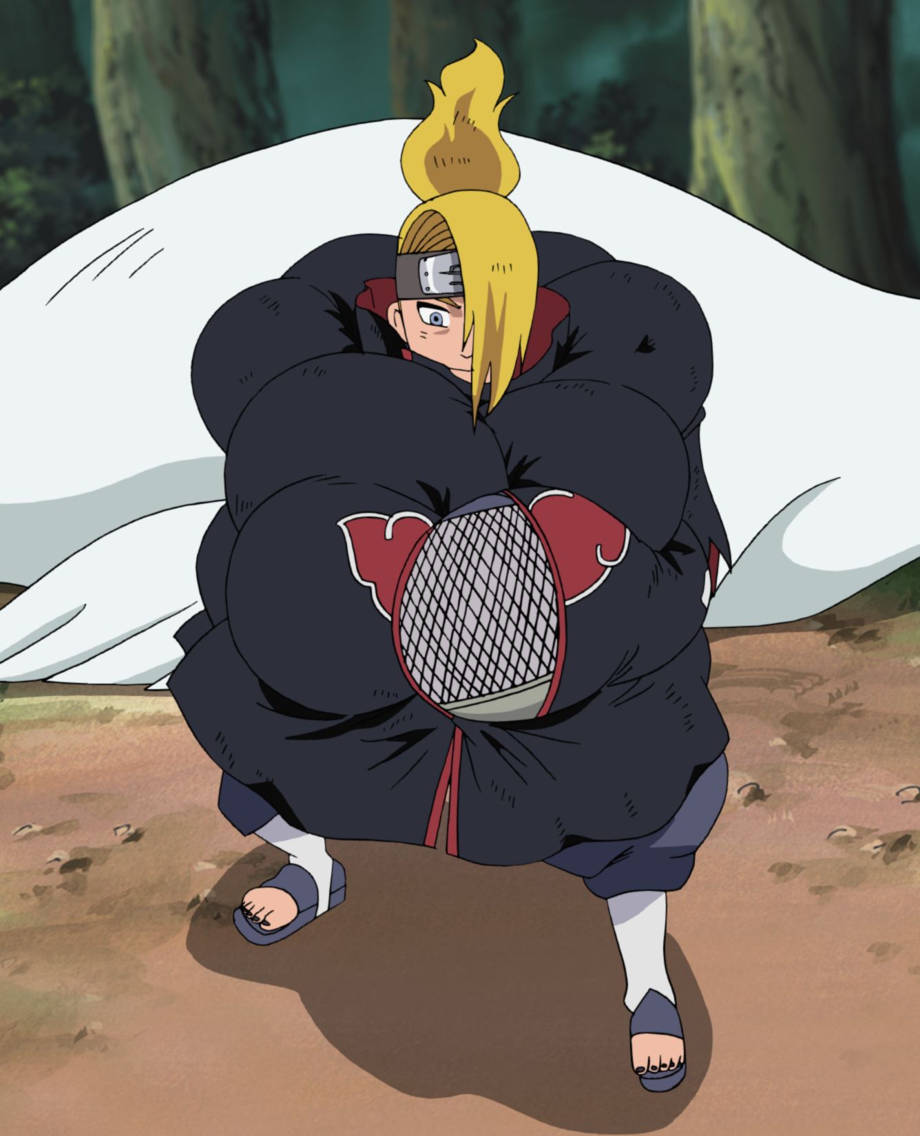 Deidara essaie de continuer sa retraite malgré cela, mais Naruto reste près de la queue !