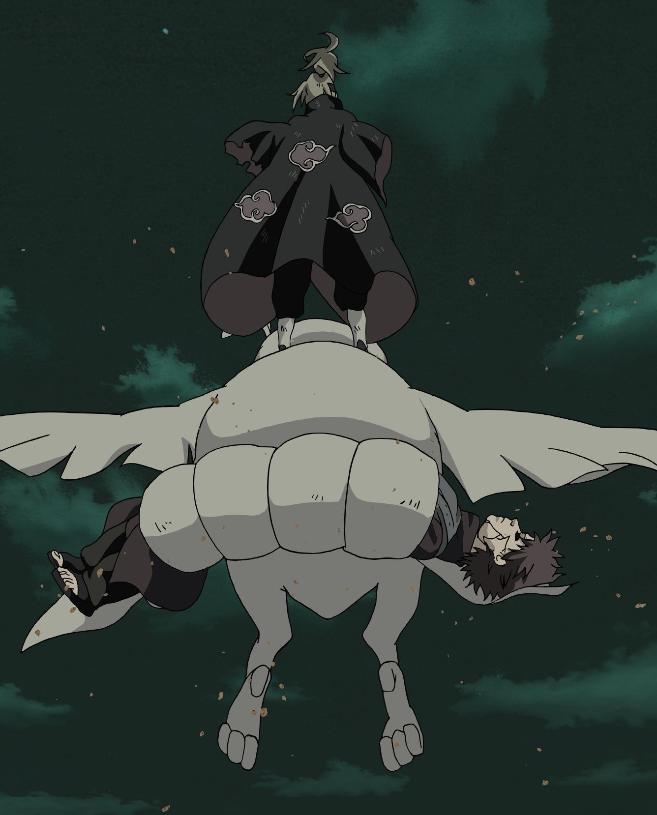 Deidara s'enfuit avec le corps de Gaara, poursuivi avec chaleur par Naruto et Kakashi.