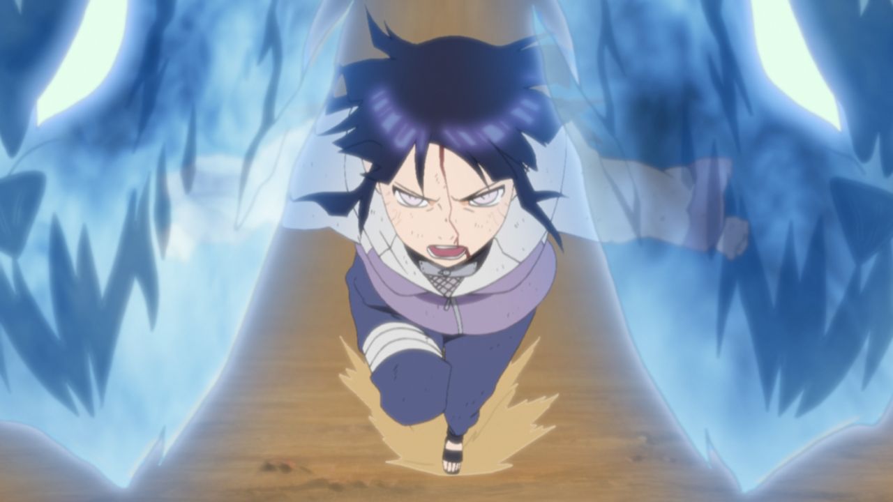 Visant les intervalles lorsque Tendo est incapable d'utiliser son Almighty Push, Naruto passe à l'offensive.