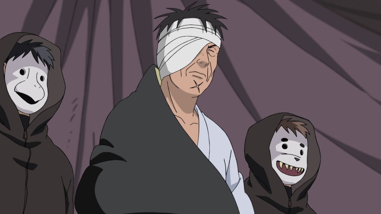Pendant ce temps, Sasuke est déformé du bâtiment du sommet et amené face à face avec Danzo.