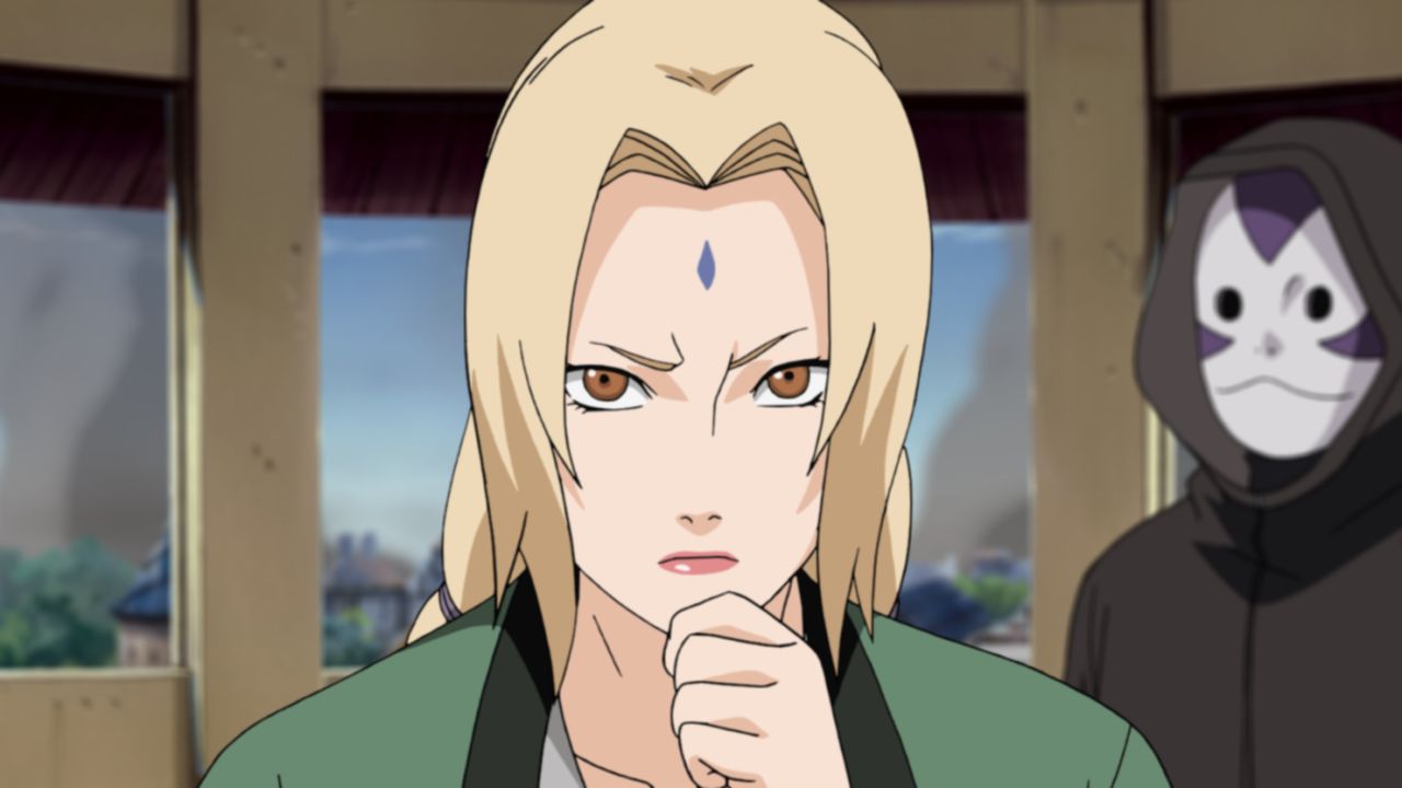Pendant ce temps, Tendo apparaît devant Tsunade, le chef et la pierre angulaire des forces défensives de la feuille cachée.