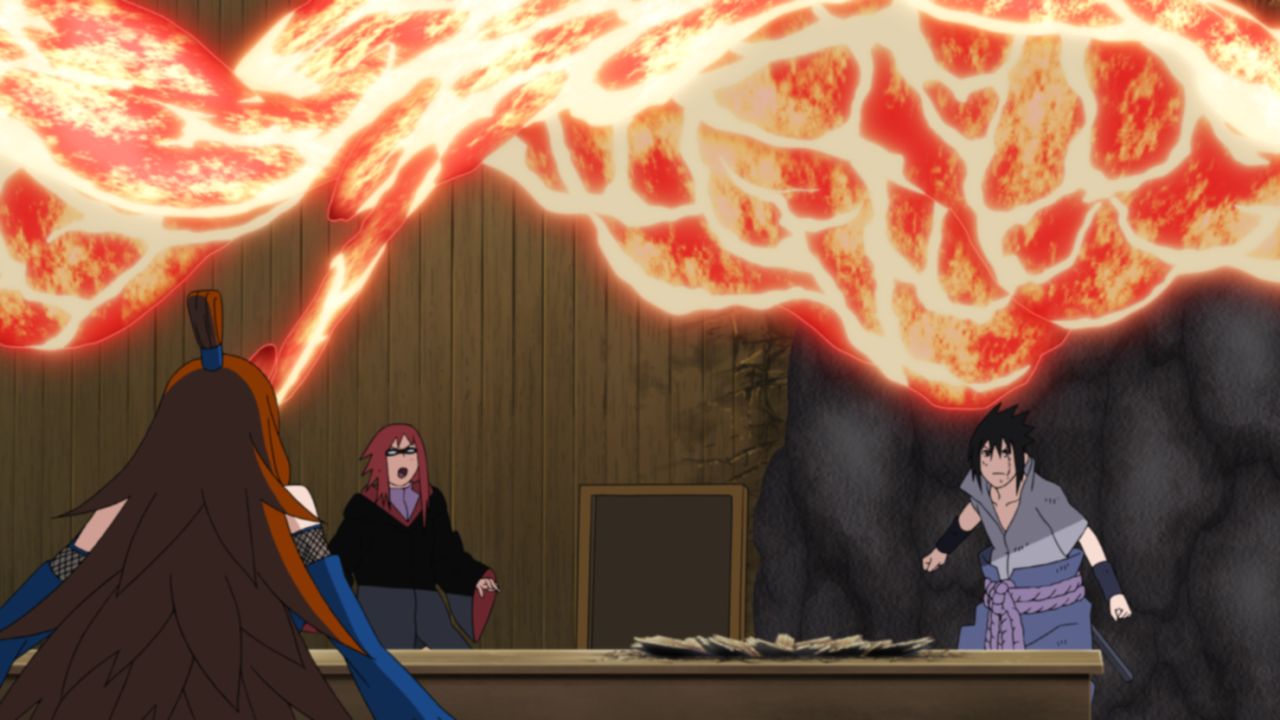 Complètement obsédé par sa vengeance, Sasuke n'hésite pas lorsque Karin est prise en otage, la poignardant également pour achever Danzo.