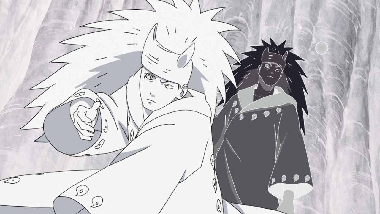 Désormais capable d'entrer dans l'espace-temps alternatif de Kamui, Madara fait face à Obito.