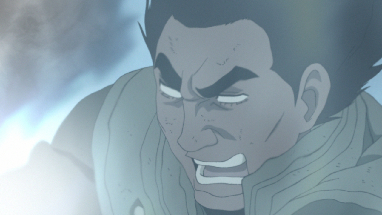 Mettant toute la force de son corps et de l'âme dans un coup de pied qui plie l'espace lui-même, Guy fait un coup de pulvérisation sur son adversaire précédemment invincible ! !!!!