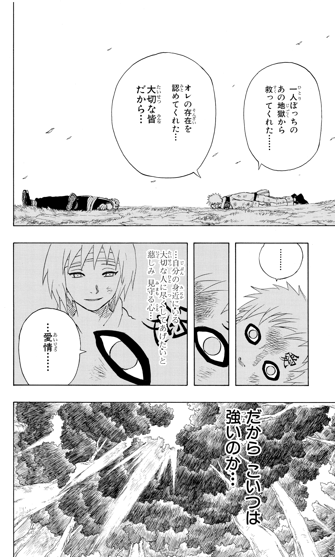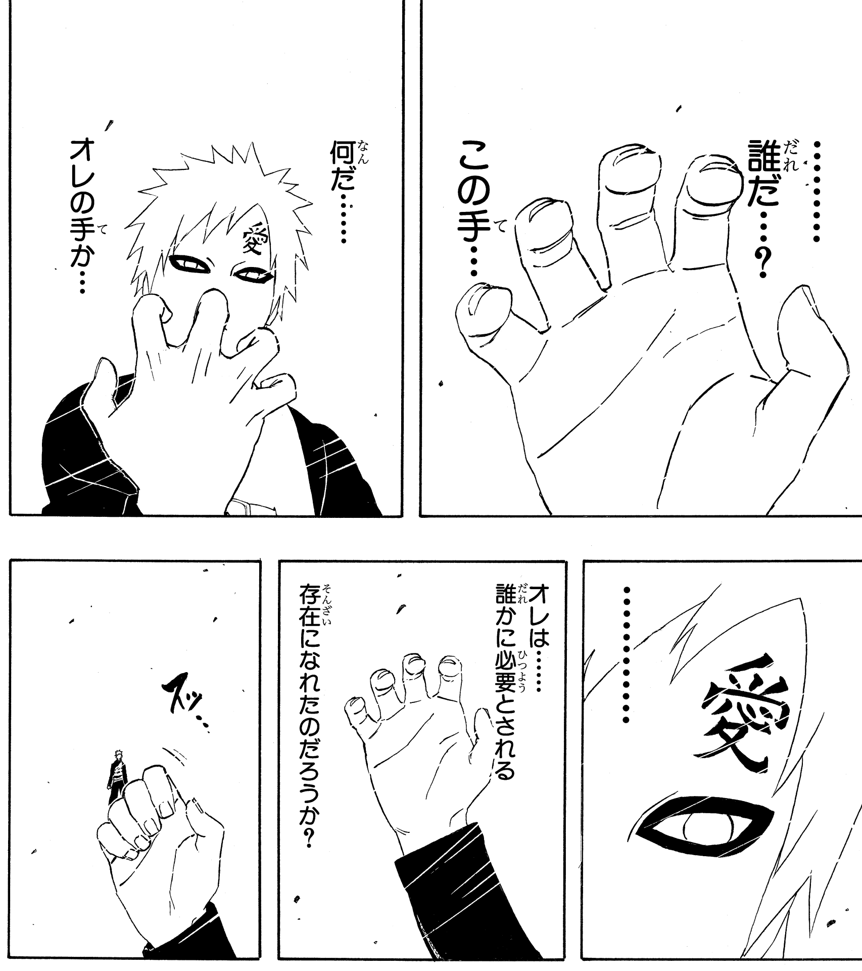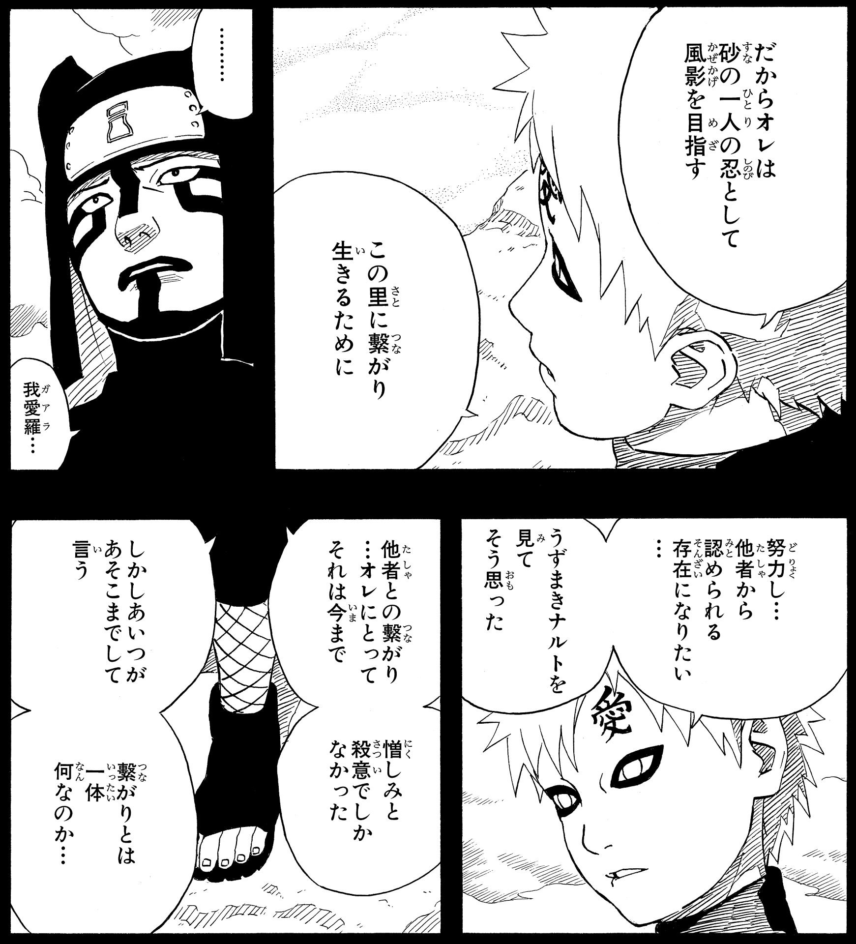 Réalisant que la clé de la force de Naruto était l'« amour », les mots de Yashamaru revinrent à l'esprit de Gaara.