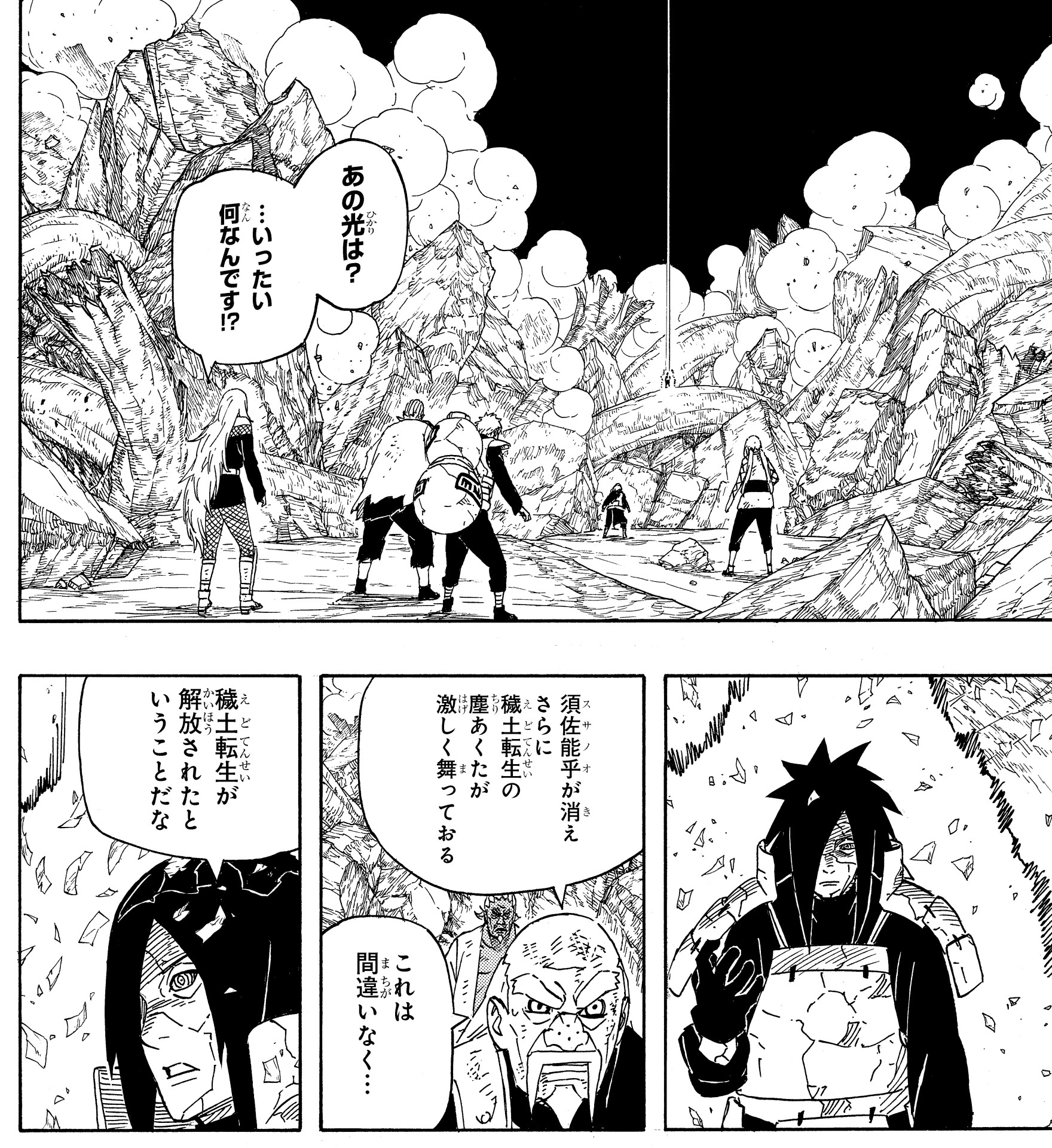 L'attaque de Madara, qui avait été déclenchée juste avant de disparaître, s'approcha de Tsunade, mais elle l'évita de justesse !